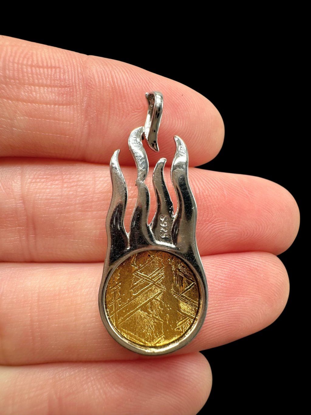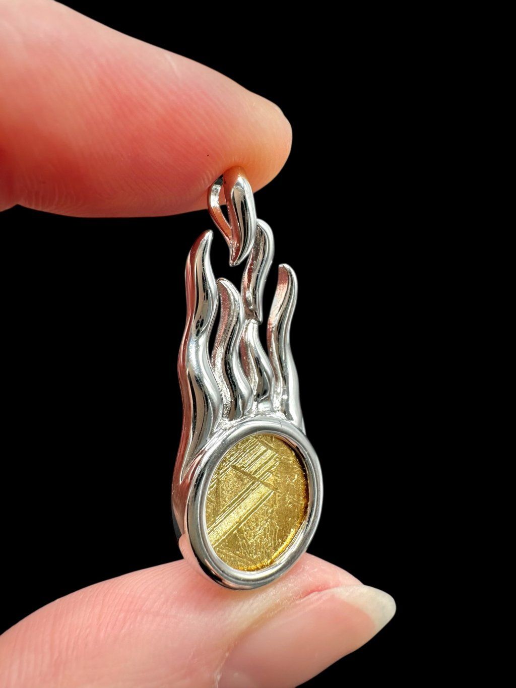 Comet pendant made from the Aletai meteorite represents a real piece of space. This iron meteorite, after processing, reveals unique Widmanstätten patterns, which formed during the slow cooling of metal in the core of an ancient planetary body. Each piece is therefore an original cosmic artifact with a history billions of years old.
