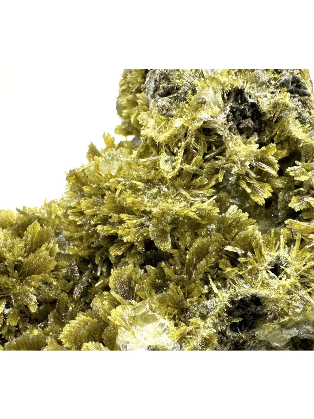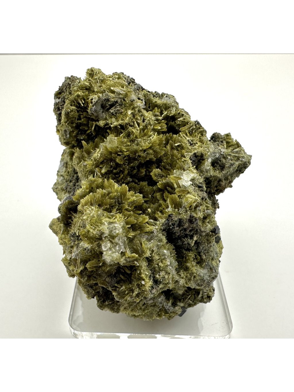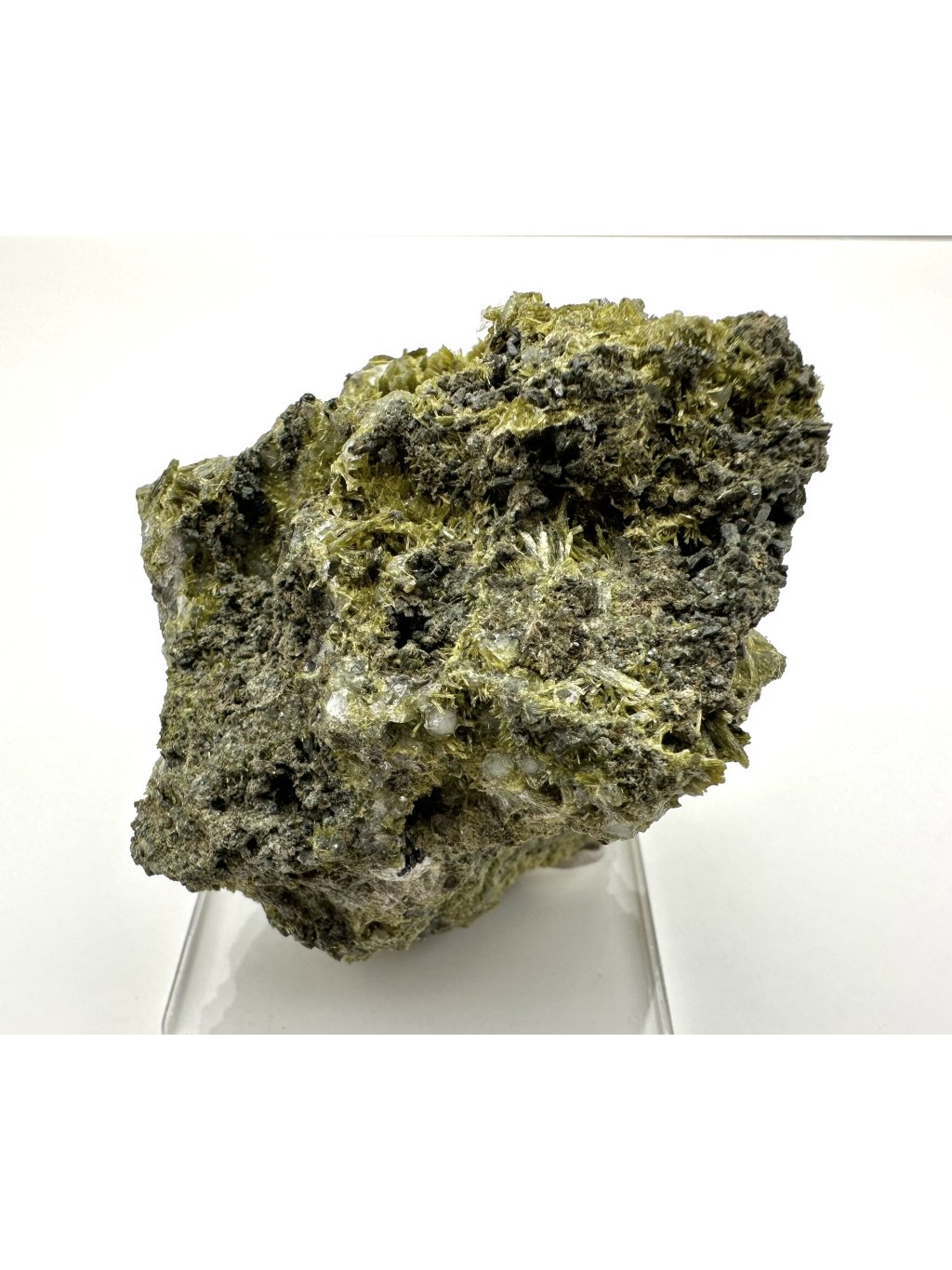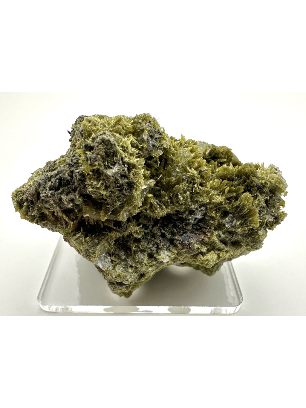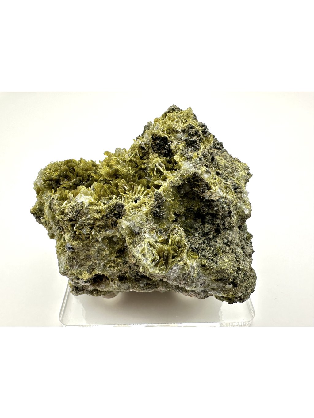 Epidote is a common mineral found in metamorphosed rocks such as schists and marbles, and also in some igneous rocks. It can be found in many places around the world, including Austria, Spain, Norway, the USA (California and Alaska), as well as in Brazil, Russia and Pakistan. In nature, it is often found together with other minerals such as quartz or albite, making for visually interesting collectible specimens.