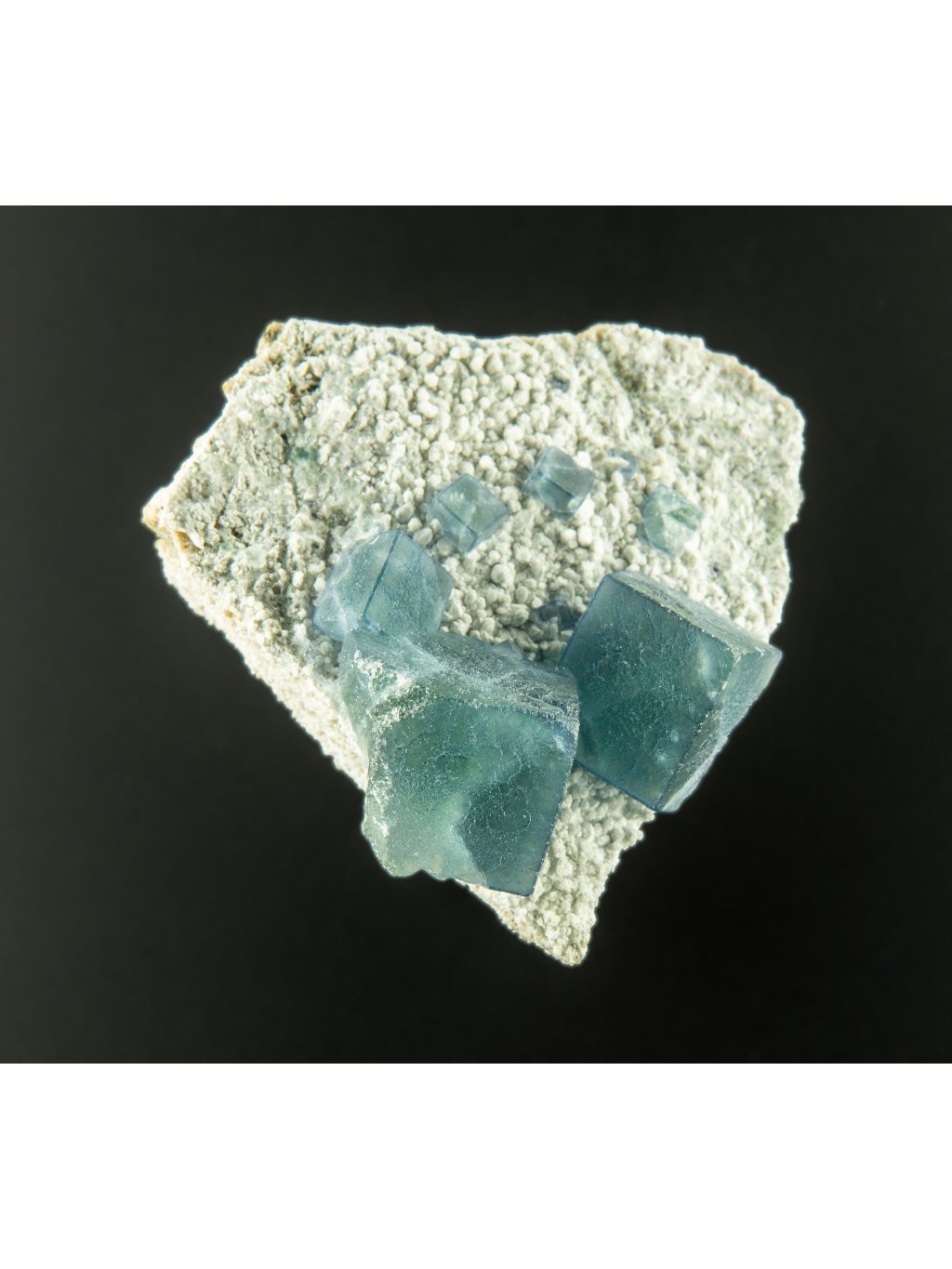 Fluorite: Recently discovered samples of fluorite from the Huanggang Mine often exhibit exceptional colors and crystal forms. These samples can be a variety of colors, including green, purple, blue and sometimes multicolored combinations. Fluorite from this site is known for its excellent transparency and lustre, often forming cubic and octahedral crystals. Fluorite is often found on a piece of rock that is usually made up of a white substrate such as calcite or quartz. This white substrate provides a contrasting background for the fluorite crystals, which can be differently coloured. This contrasting effect enhances the visual appeal and aesthetic value of these fluorite samples.