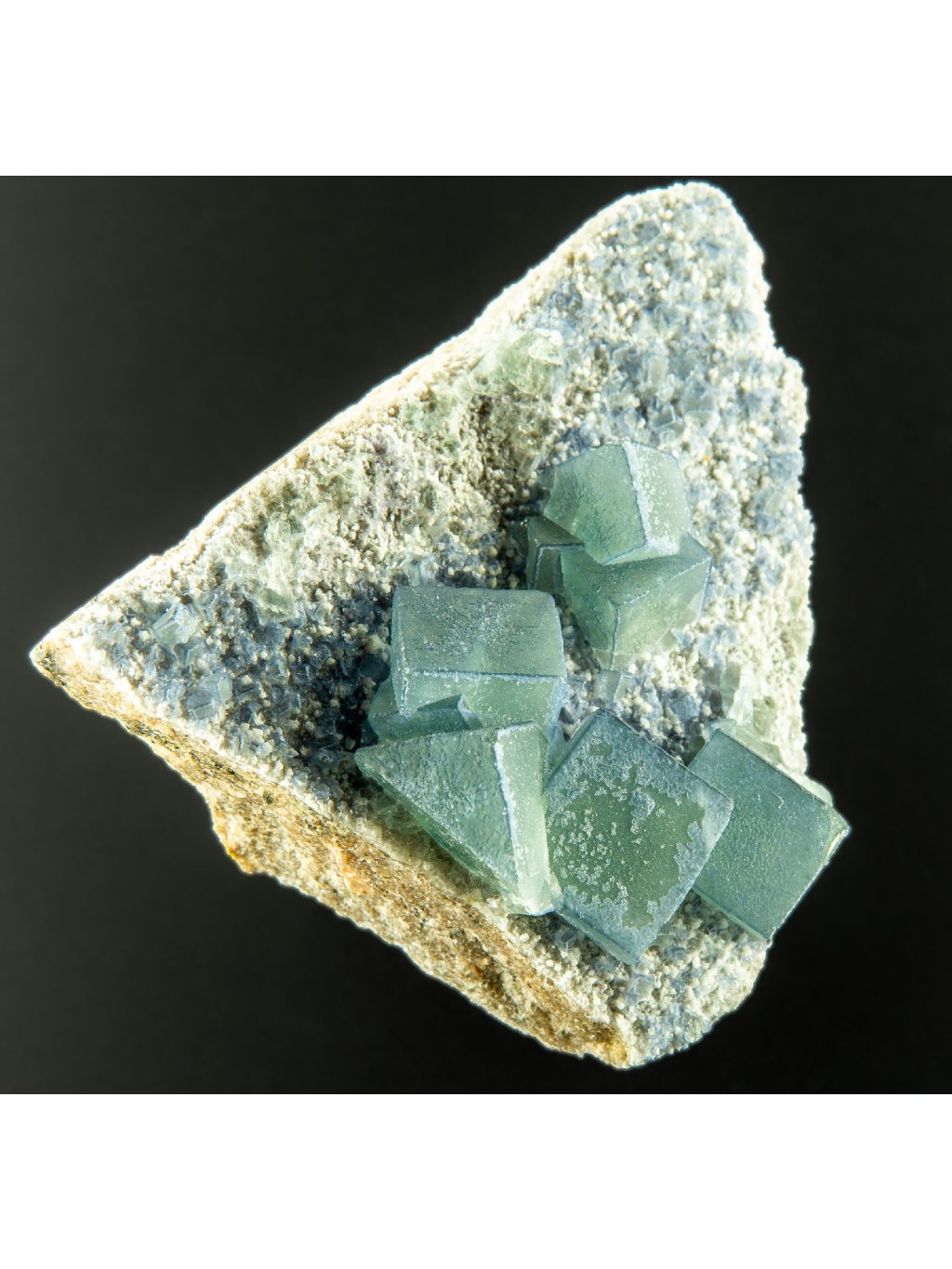 Fluorite: Recently discovered samples of fluorite from the Huanggang Mine often exhibit exceptional colors and crystal forms. These samples can be a variety of colors, including green, purple, blue and sometimes multicolored combinations. Fluorite from this site is known for its excellent transparency and lustre, often forming cubic and octahedral crystals. Fluorite is often found on a piece of rock that is usually made up of a white substrate such as calcite or quartz. This white substrate provides a contrasting background for the fluorite crystals, which can be differently coloured. This contrasting effect enhances the visual appeal and aesthetic value of these fluorite samples.