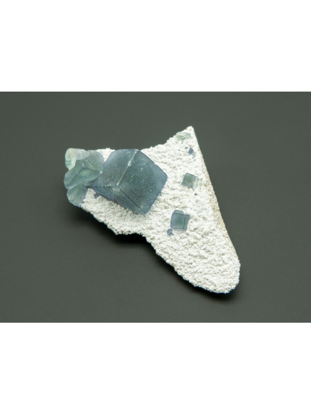 Fluorite: Recently discovered samples of fluorite from the Huanggang Mine often exhibit exceptional colors and crystal forms. These samples can be a variety of colors, including green, purple, blue and sometimes multicolored combinations. Fluorite from this site is known for its excellent transparency and lustre, often forming cubic and octahedral crystals. Fluorite is often found on a piece of rock that is usually made up of a white substrate such as calcite or quartz. This white substrate provides a contrasting background for the fluorite crystals, which can be differently coloured. This contrasting effect enhances the visual appeal and aesthetic value of these fluorite samples.