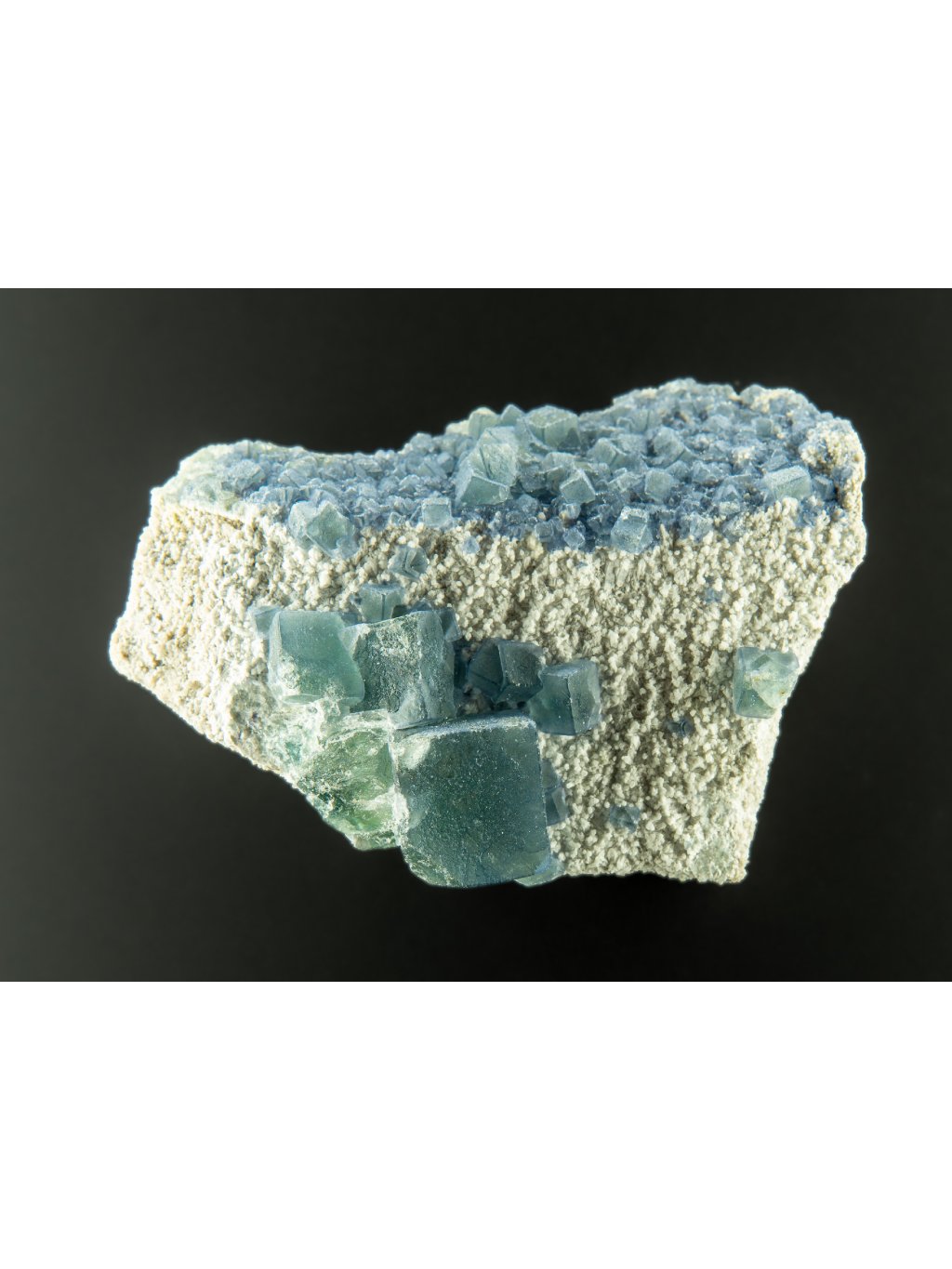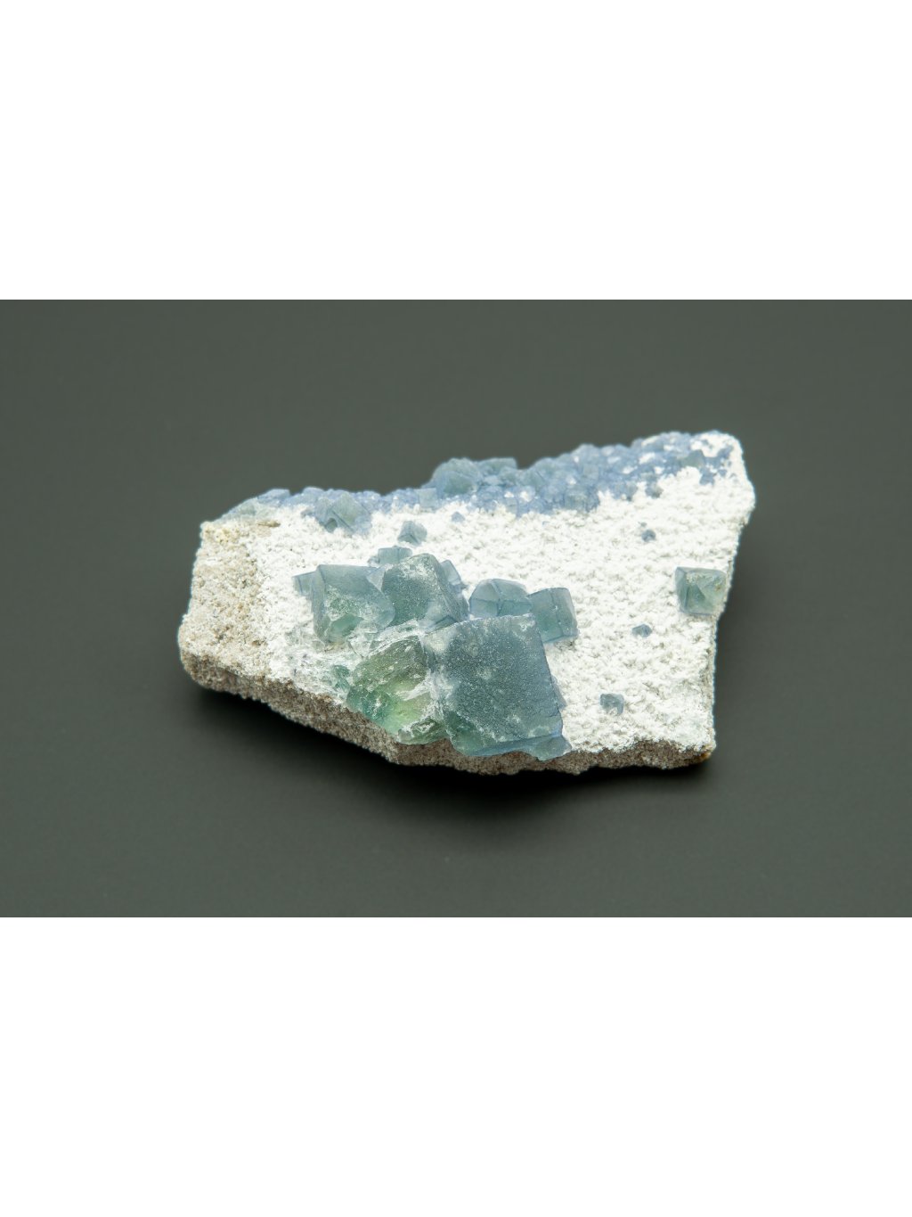 Fluorite: Recently discovered samples of fluorite from the Huanggang Mine often exhibit exceptional colors and crystal forms. These samples can be a variety of colors, including green, purple, blue and sometimes multicolored combinations. Fluorite from this site is known for its excellent transparency and lustre, often forming cubic and octahedral crystals. Fluorite is often found on a piece of rock that is usually made up of a white substrate such as calcite or quartz. This white substrate provides a contrasting background for the fluorite crystals, which can be differently coloured. This contrasting effect enhances the visual appeal and aesthetic value of these fluorite samples.