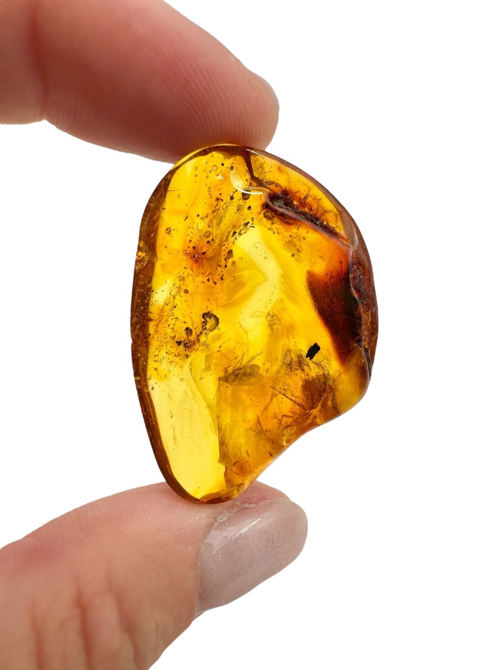 Due to its high content of succinic acid (up to around 8%), Baltic amber is considered to be of higher quality compared to other types. It often contains natural inclusions, such as air bubbles, plant fragments, or small insects, which greatly enhance its collectible and aesthetic value.
