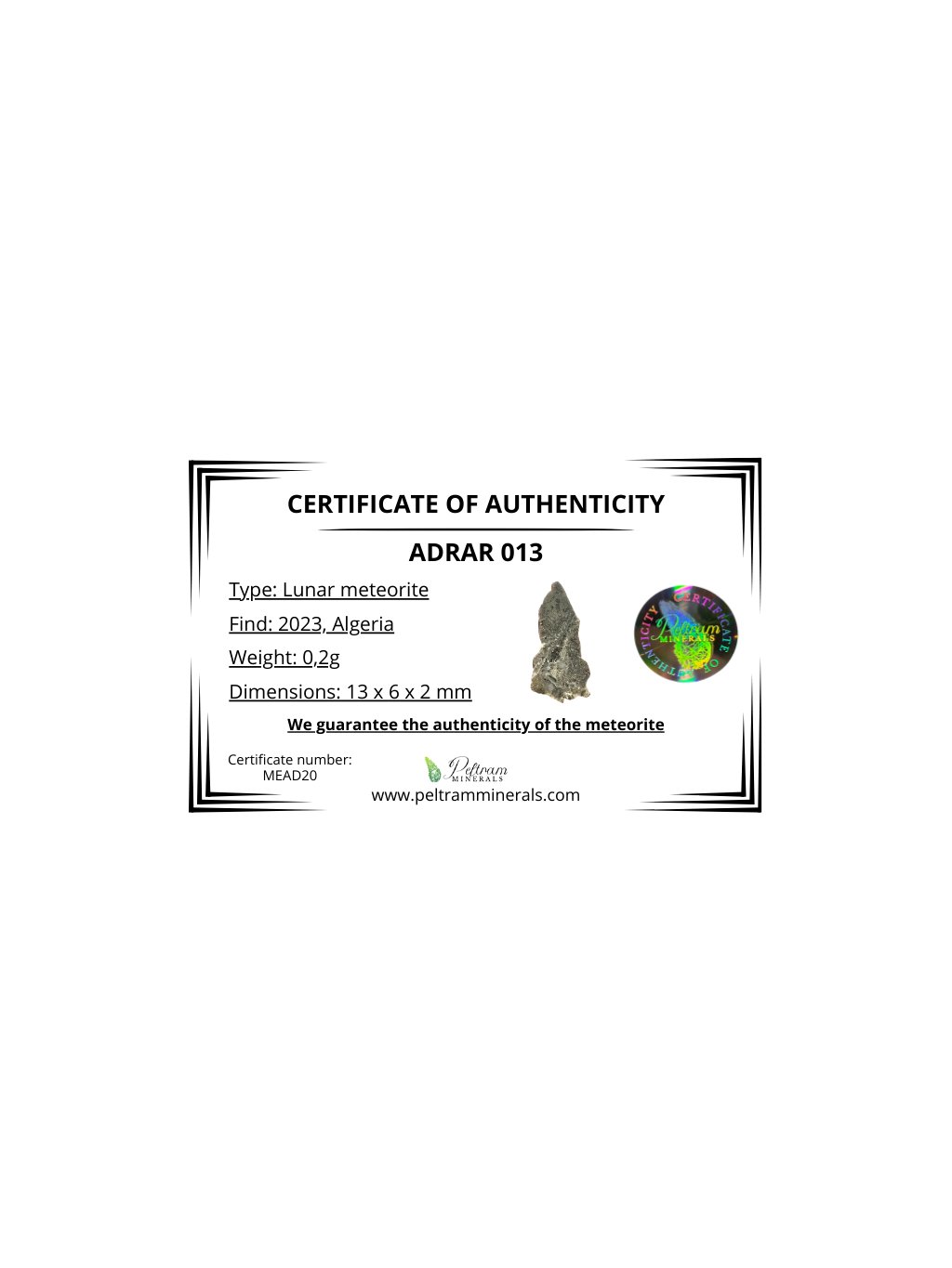 Lunar meteorite Adrar 013 – 0,2g – Algeria