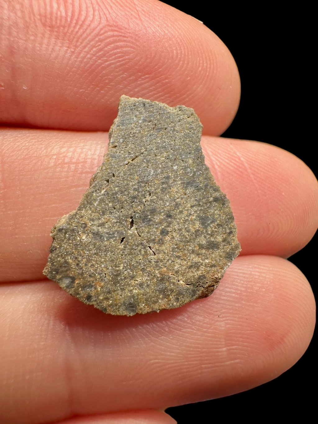 From a petrographic perspective, it is a brecciated troctolitic anorthosite. The dominant mineral is anorthitic plagioclase, which accounts for approximately 80% of the rock volume. Olivine is also present, along with smaller amounts of low-calcium pyroxene. The meteorite’s structure shows clear evidence of strong impact shock, typical of material ejected from the surface of the Moon during major collisions.