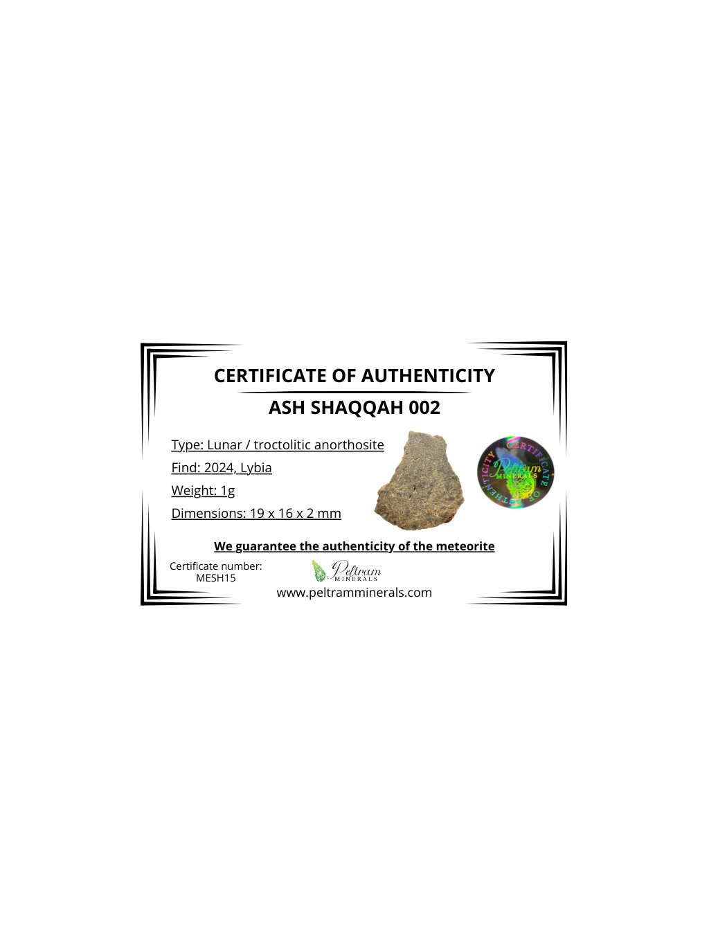 Lunar meteorite Ash Shaqqah 002 – 1g – Libya