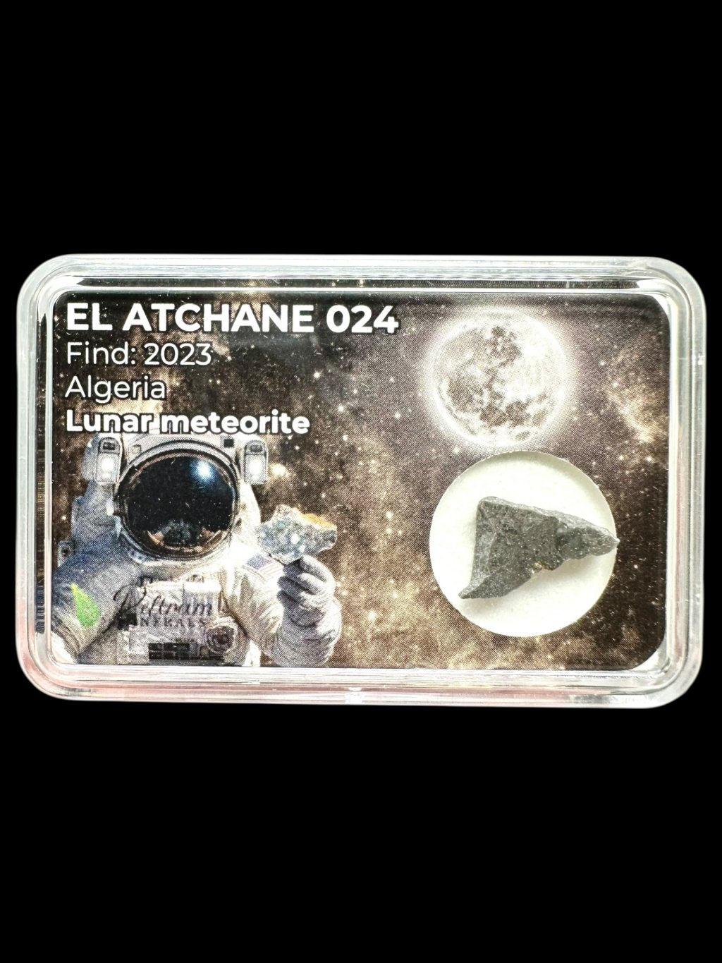 Thanks to its verified provenance, rare classification, and well-documented mineralogy, El Atchane 024 is considered a highly valuable lunar meteorite. It represents a unique opportunity to own a true fragment of the Moon’s crust.