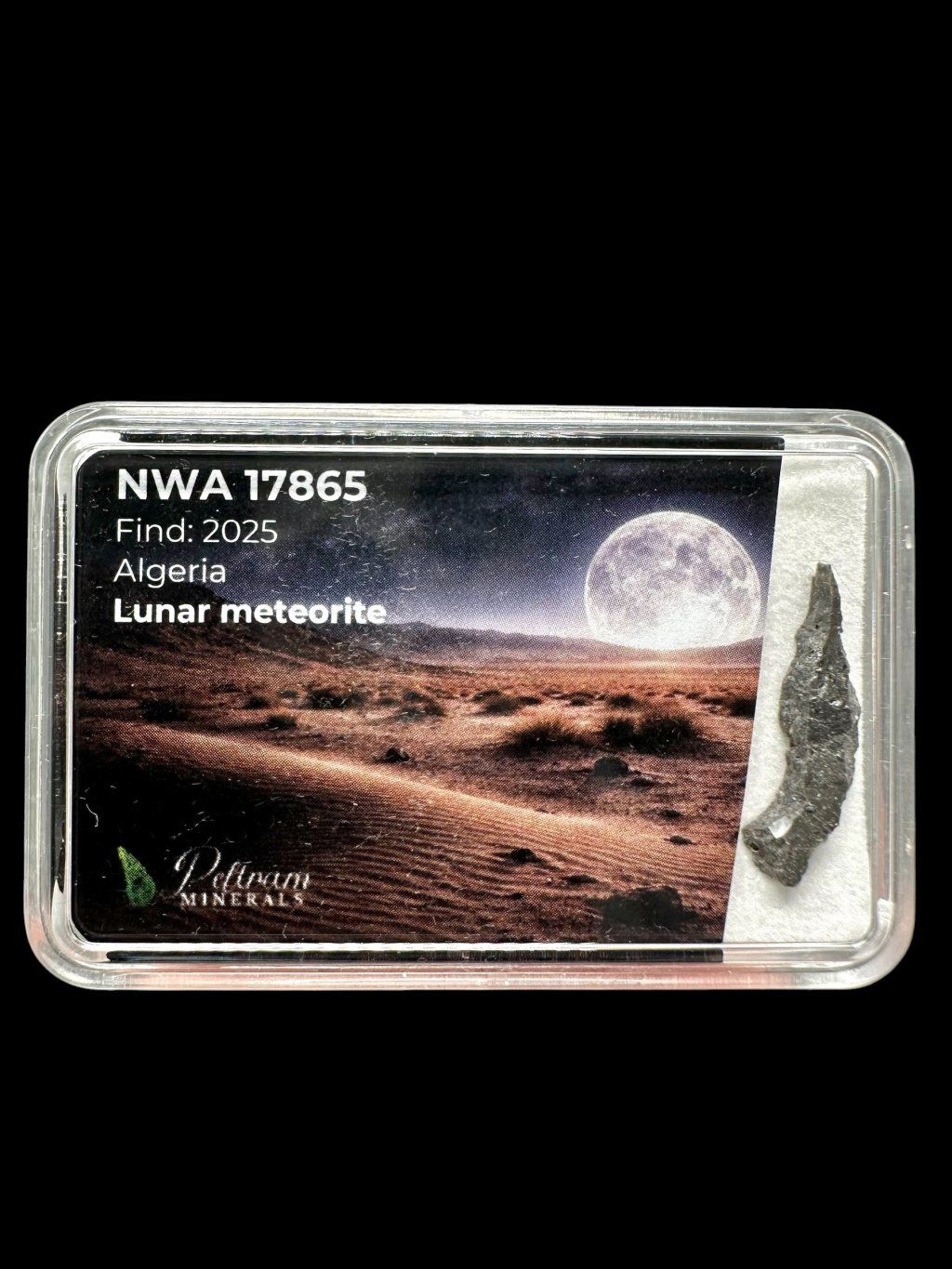 NWA 17865 is an exceptional lunar meteorite originating from the Algerian Sahara, discovered in 2025. In fact, it consists of two nearly identical stones weighing 5951 g and 4249 g, making it a remarkable find among lunar meteorites. This material represents a true fragment of the lunar crust, ejected from the surface of the Moon during an ancient impact event.