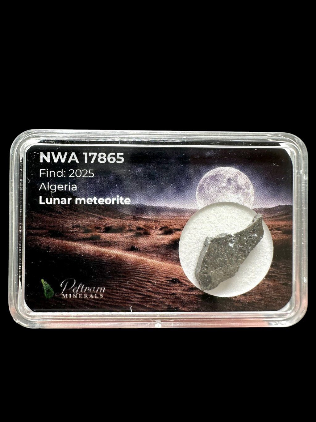 NWA 17865 is an exceptional lunar meteorite originating from the Algerian Sahara, discovered in 2025. In fact, it consists of two nearly identical stones weighing 5951 g and 4249 g, making it a remarkable find among lunar meteorites. This material represents a true fragment of the lunar crust, ejected from the surface of the Moon during an ancient impact event.