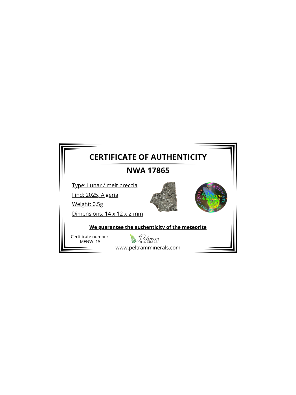 Lunar meteorite NWA 17865 – 0,5g – Algeria