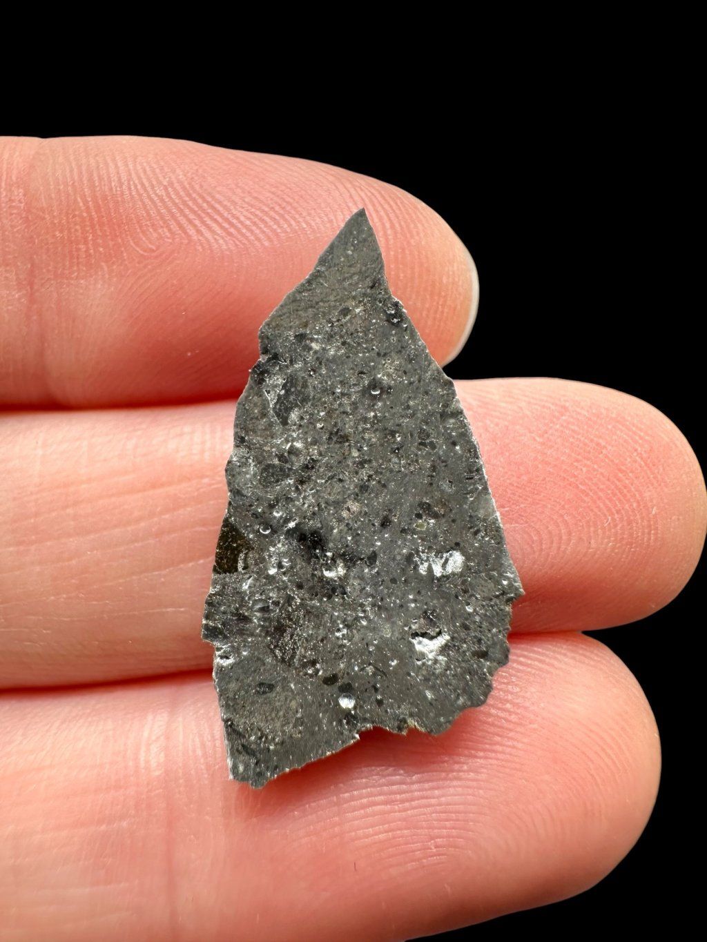From a mineralogical perspective, NWA 17865 consists of approximately 80% anorthitic plagioclase and about 20% olivine. Pyroxene is present only in minor amounts. The olivine is very fine-grained and enclosed within a feldspar-rich matrix dominated by plagioclase.