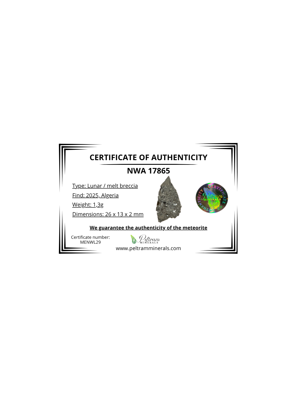 Lunar meteorite NWA 17865 – 1,3g – Algeria