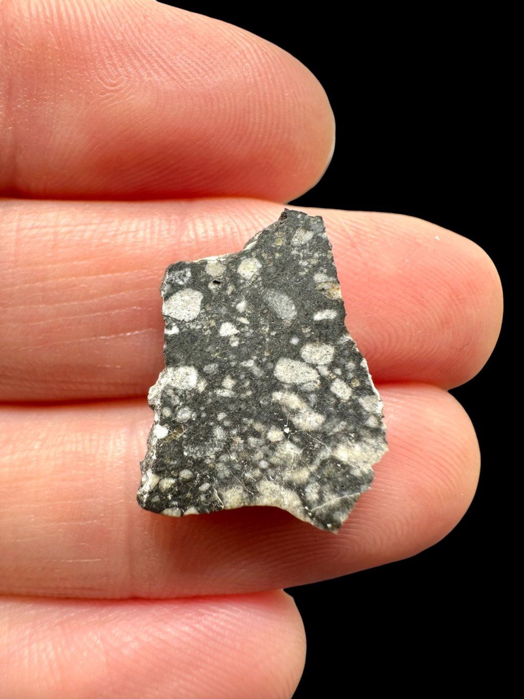 Ouargla 008 belongs to so-called brecciated meteorites, meaning it is composed of various rock fragments bound together into a single compact mass. It mainly contains anorthositic components, typical for the lunar crust, as well as darker mafic rocks such as gabbro. This combination makes the meteorite a valuable source of information about various geological processes occurring on the Moon.