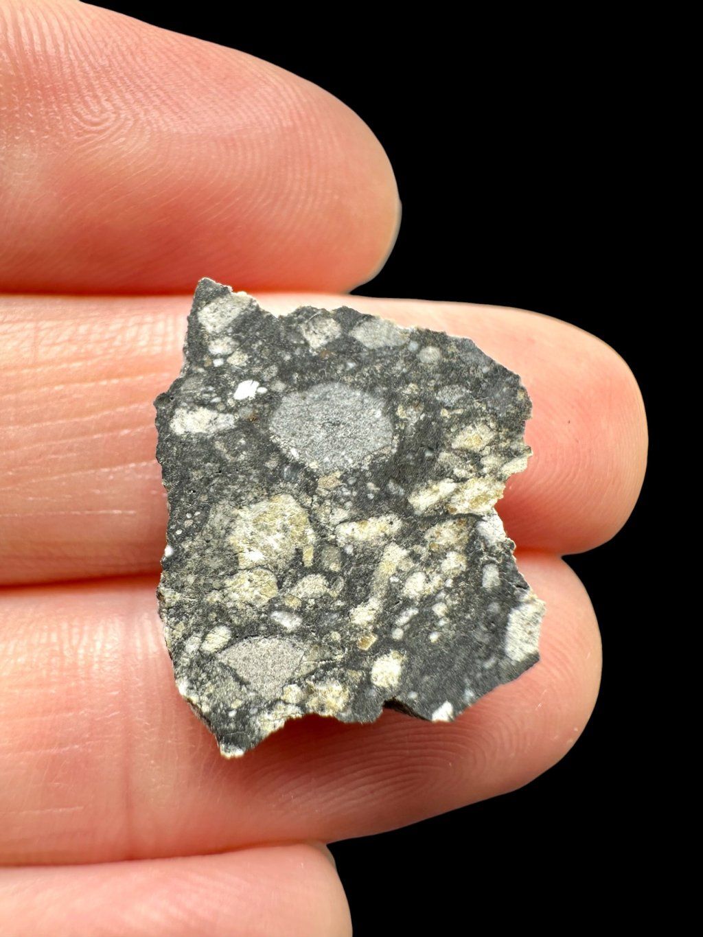 Ouargla 008 belongs to so-called brecciated meteorites, meaning it is composed of various rock fragments bound together into a single compact mass. It mainly contains anorthositic components, typical for the lunar crust, as well as darker mafic rocks such as gabbro. This combination makes the meteorite a valuable source of information about various geological processes occurring on the Moon.