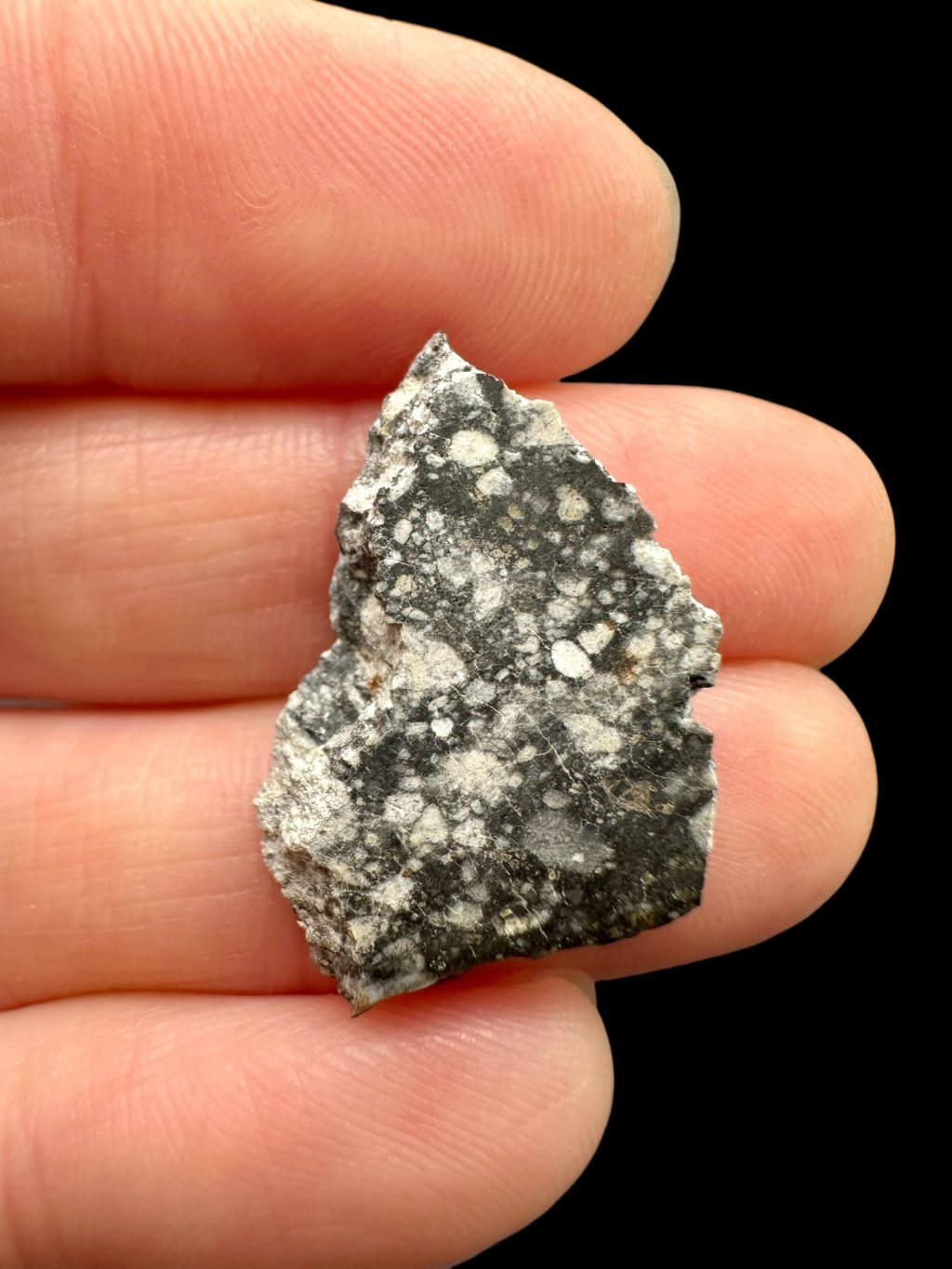 Ouargla 008 belongs to so-called brecciated meteorites, meaning it is composed of various rock fragments bound together into a single compact mass. It mainly contains anorthositic components, typical for the lunar crust, as well as darker mafic rocks such as gabbro. This combination makes the meteorite a valuable source of information about various geological processes occurring on the Moon.