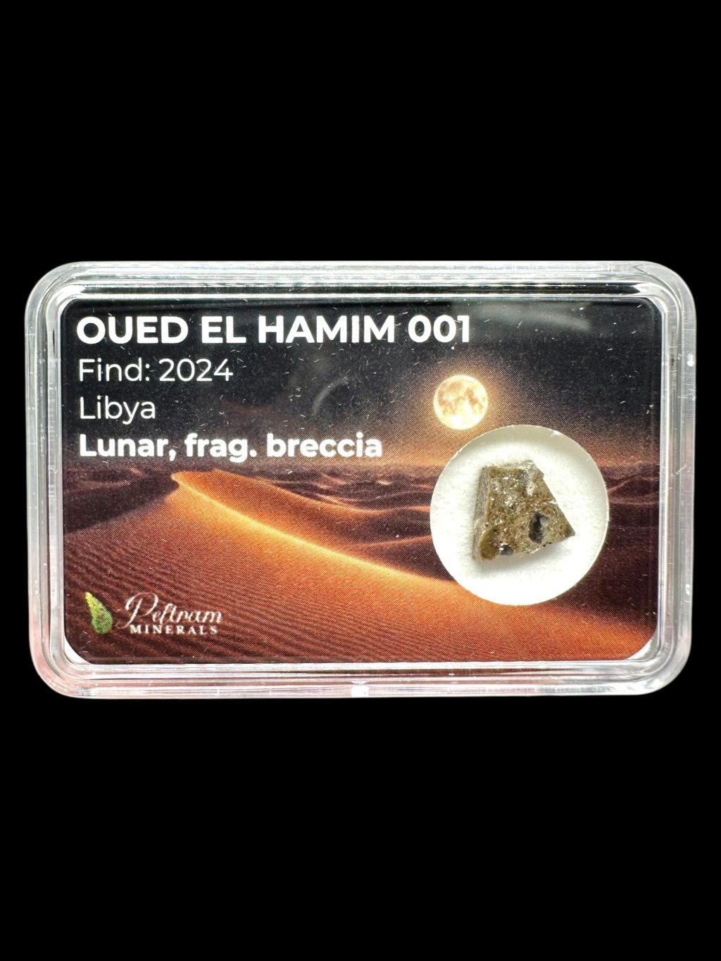 Oued El Hamim 001 is a rare lunar meteorite classified as a fragmental breccia. It was discovered in 2024 near Ajdabiya, Libya, with a total weight of 33.18 kg found in four large fragments weighing 12.6 kg, 10.8 kg, 6.0 kg, and 3.78 kg.