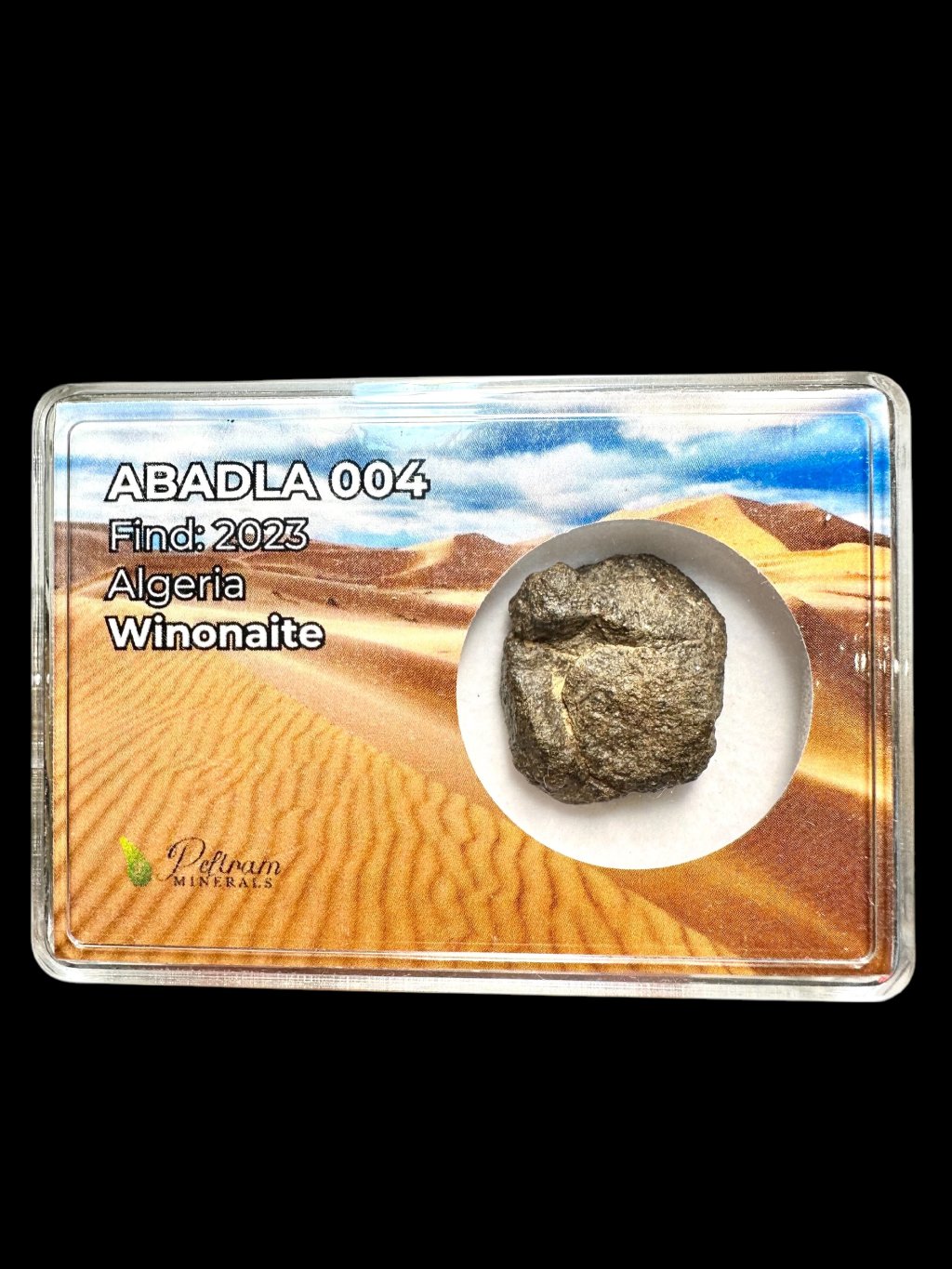 Abadla 004, discovered in 2023 near the city of Bechar, Algeria, belongs to the rare category of primitive achondrites, specifically the winonaite group. Its composition is similar to chondrites, particularly H and E types. These meteorites show signs of metamorphism, partial melting, brecciation, and often contain relict chondrules, characteristic of their chemical and mineralogical composition lying between H and E chondrites.
