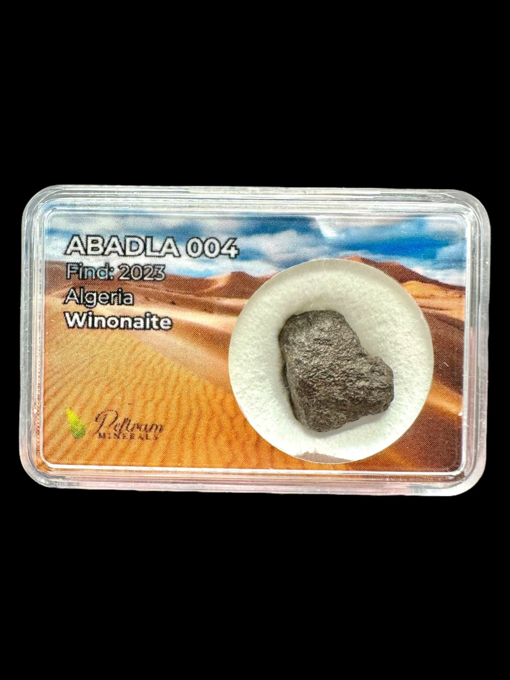 Abadla 004, discovered in 2023 near the city of Bechar, Algeria, belongs to the rare category of primitive achondrites, specifically the winonaite group. Its composition is similar to chondrites, particularly H and E types. These meteorites show signs of metamorphism, partial melting, brecciation, and often contain relict chondrules, characteristic of their chemical and mineralogical composition lying between H and E chondrites.
