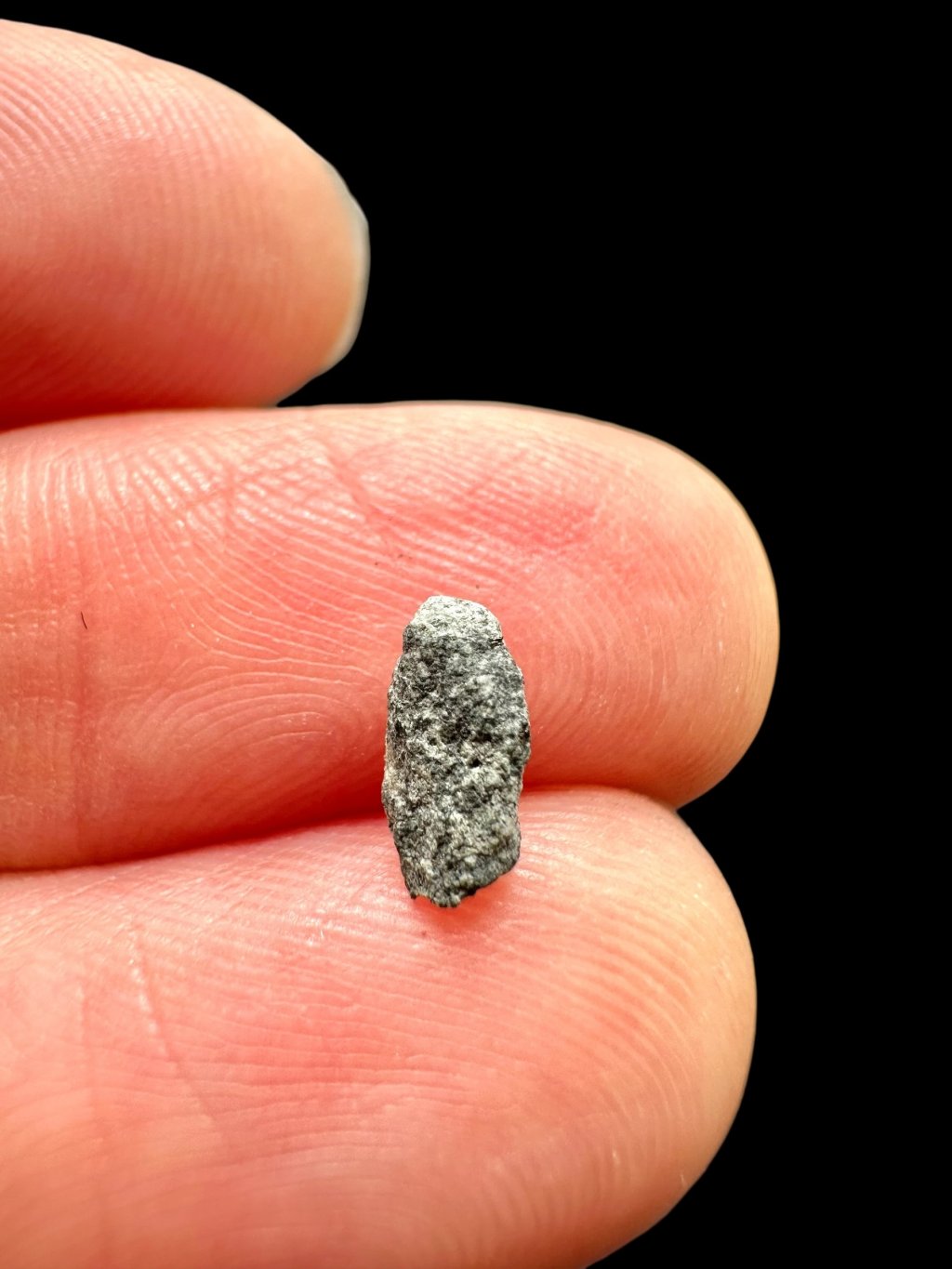 Overall, the meteorite has a finely brecciated structure – slightly fractured and re-cemented – which is the result of previous collisional events in space. This texture, along with the low metal content and visible metamorphic features, corresponds to the LL6 classification.