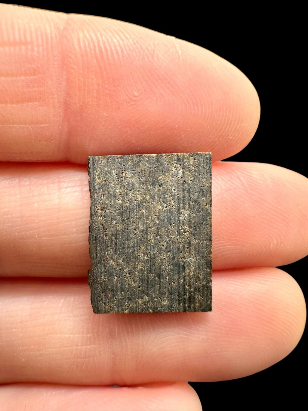 The internal structure shows signs of thermal metamorphism – the rock was transformed by high temperatures, which is typical for LL6 chondrites. This means the original spherical chondrules are partially or completely blurred and have merged with the surrounding matrix.