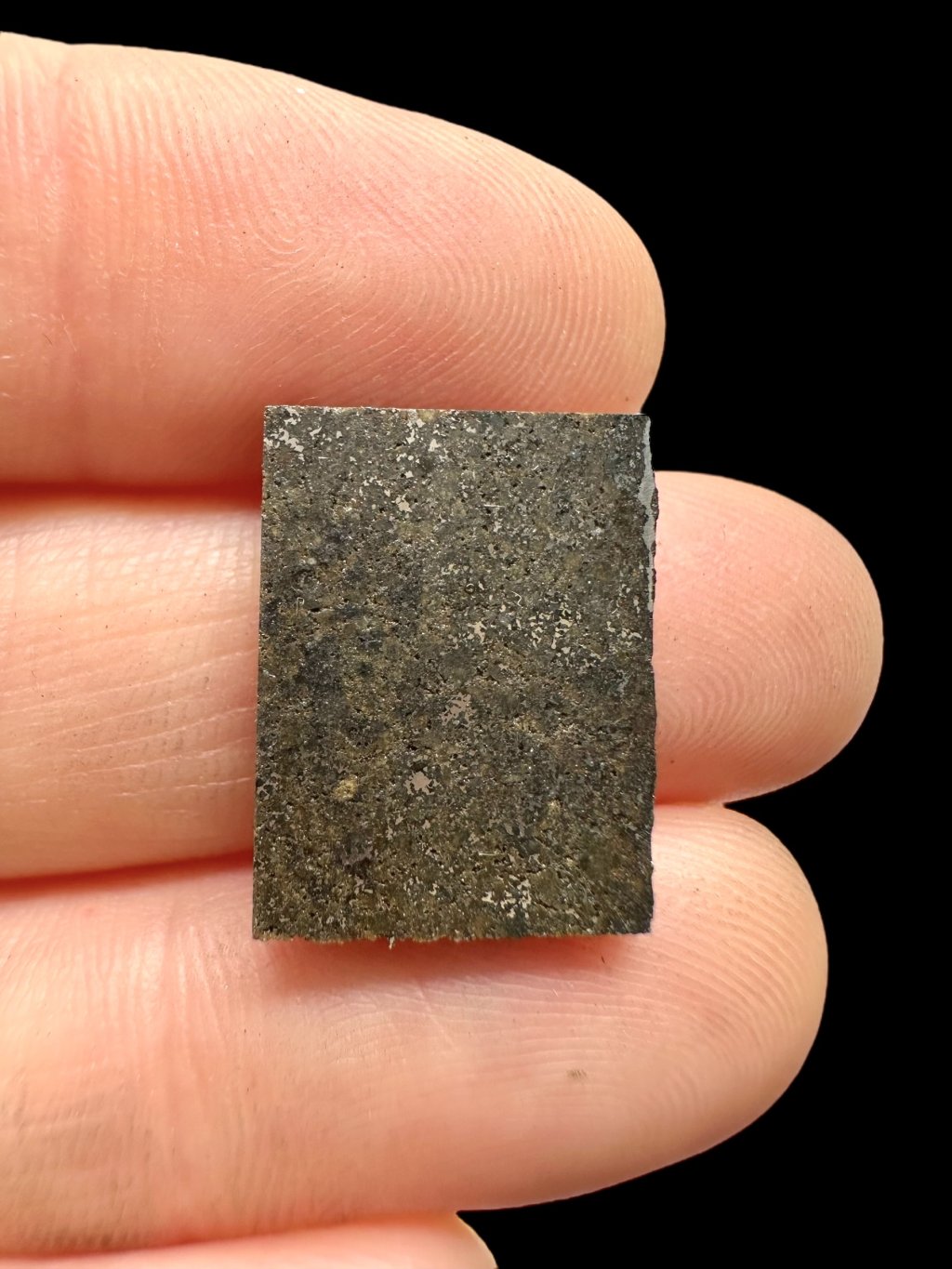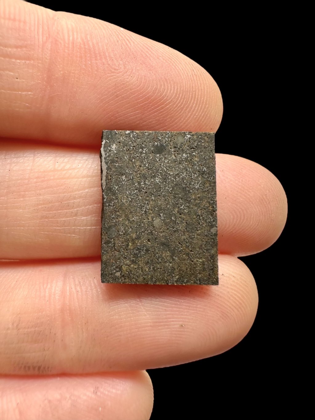 The internal structure shows signs of thermal metamorphism – the rock was transformed by high temperatures, which is typical for LL6 chondrites. This means the original spherical chondrules are partially or completely blurred and have merged with the surrounding matrix.