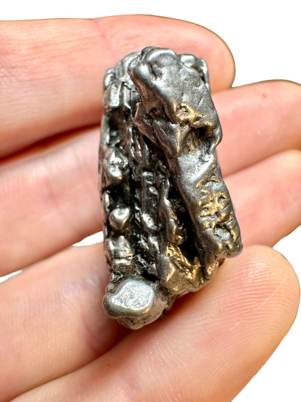 Campo del Cielo is composed primarily of iron (approx. 92%) and nickel (around 6.7%), with minor traces of other metals such as cobalt and phosphorus. It also features characteristic crystalline structures called Widmanstätten patterns, visible when the surface is etched with acid. These patterns result from the slow cooling of the iron-nickel alloy in space and are a distinctive feature of iron meteorites.