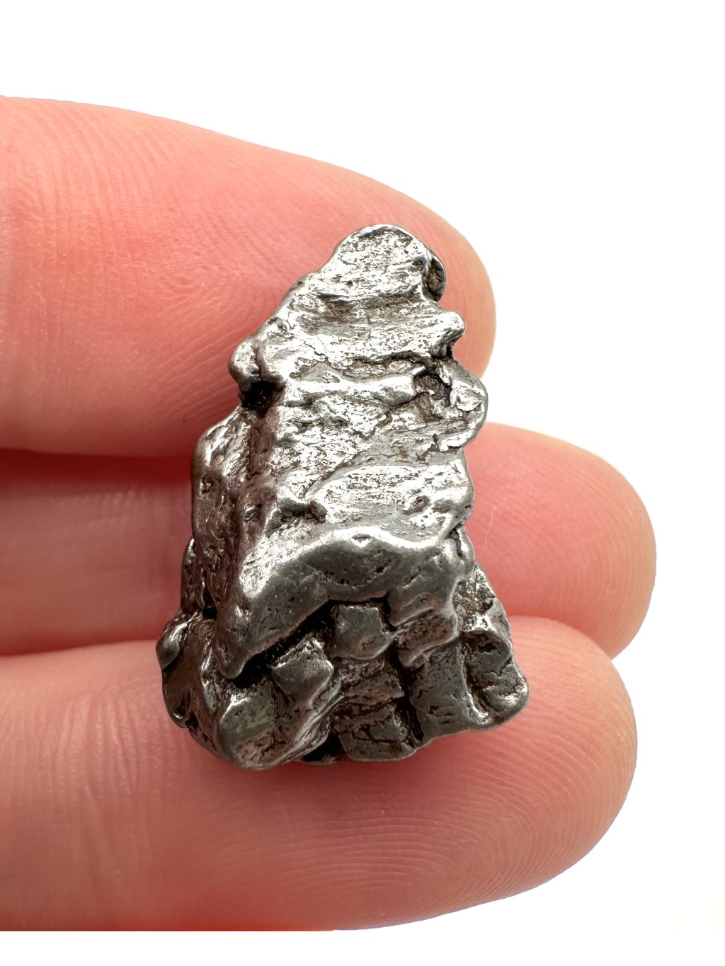 Campo del Cielo is composed primarily of iron (approx. 92%) and nickel (around 6.7%), with minor traces of other metals such as cobalt and phosphorus. It also features characteristic crystalline structures called Widmanstätten patterns, visible when the surface is etched with acid. These patterns result from the slow cooling of the iron-nickel alloy in space and are a distinctive feature of iron meteorites.
