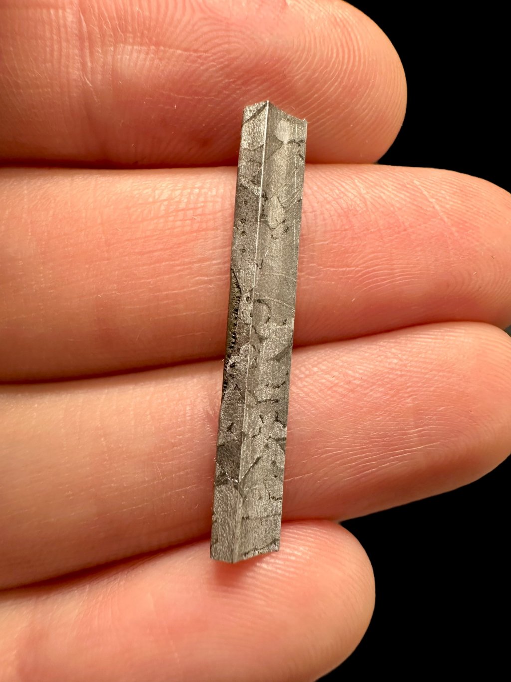 Inside the meteorite, there is also a structure called Widmanstätten patterns - complex patterns that form when the metal cools very slowly in space. These patterns appear when the meteorite is cut and etched with acid. They give us valuable information about how the meteorite formed - for example, that it formed deep in the core of an ancient planet or asteroid that no longer exists today.