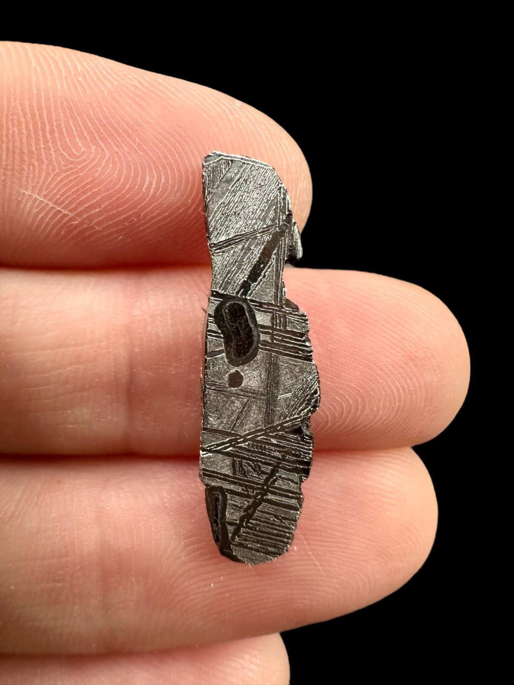 The first fragment of this meteorite was discovered in 1906, with others found during the 20th and 21st centuries, some weighing up to several hundred kilograms. It is classified as a fine octahedrite of type IVA and is especially known for its striking Widmanstätten patterns, which are irregular iron-nickel crystal structures. These patterns form through the slow cooling of metal in space. Not all iron meteorites display these patterns. To reveal them, the surface must be polished and etched with diluted nitric acid, preferably mixed with methanol.