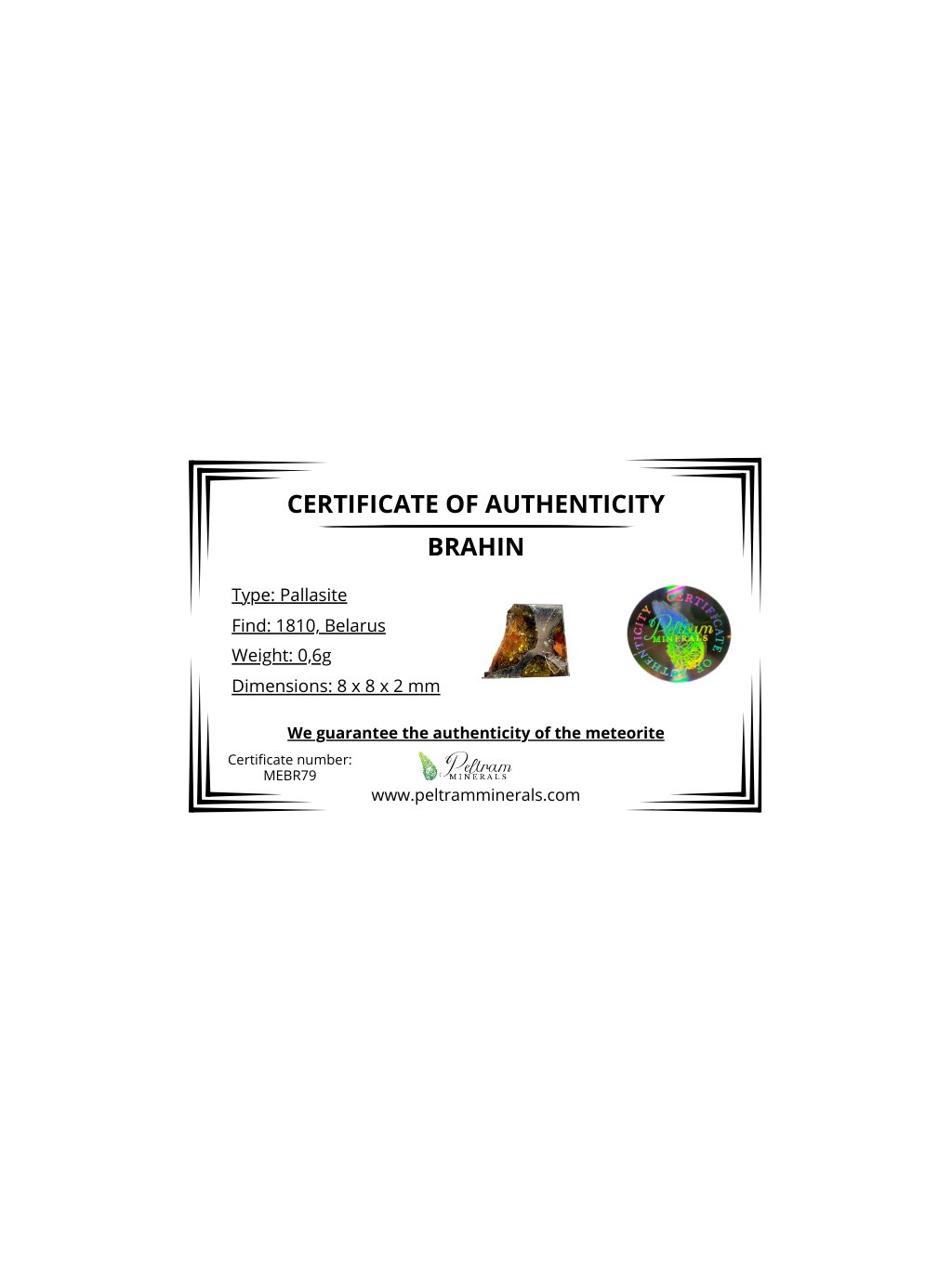 Meteorite Pallasit Brahin 0,6g – Extra Quality – Belarus