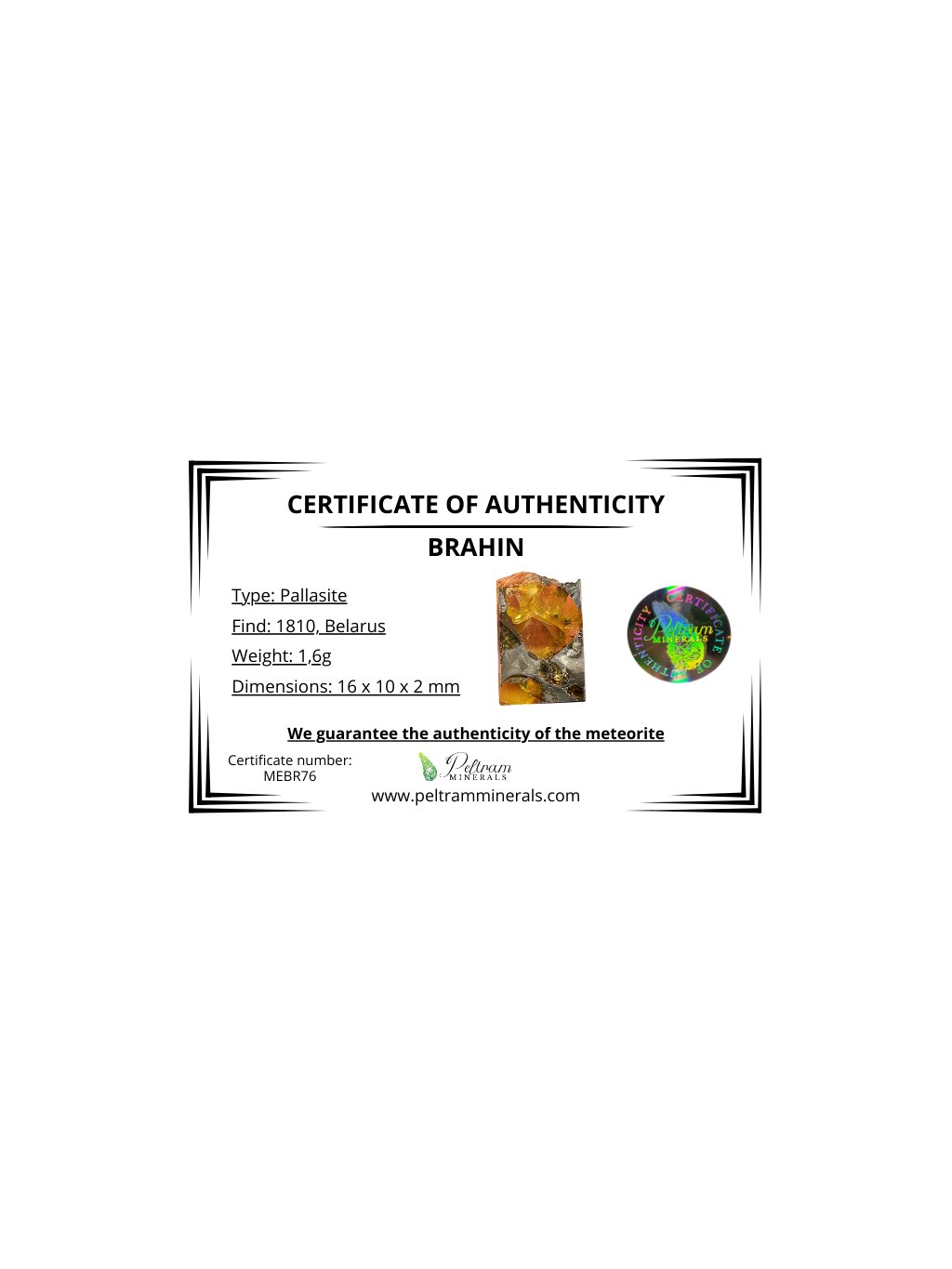 Meteorite Pallasit Brahin 1,6g – Extra Quality – Belarus