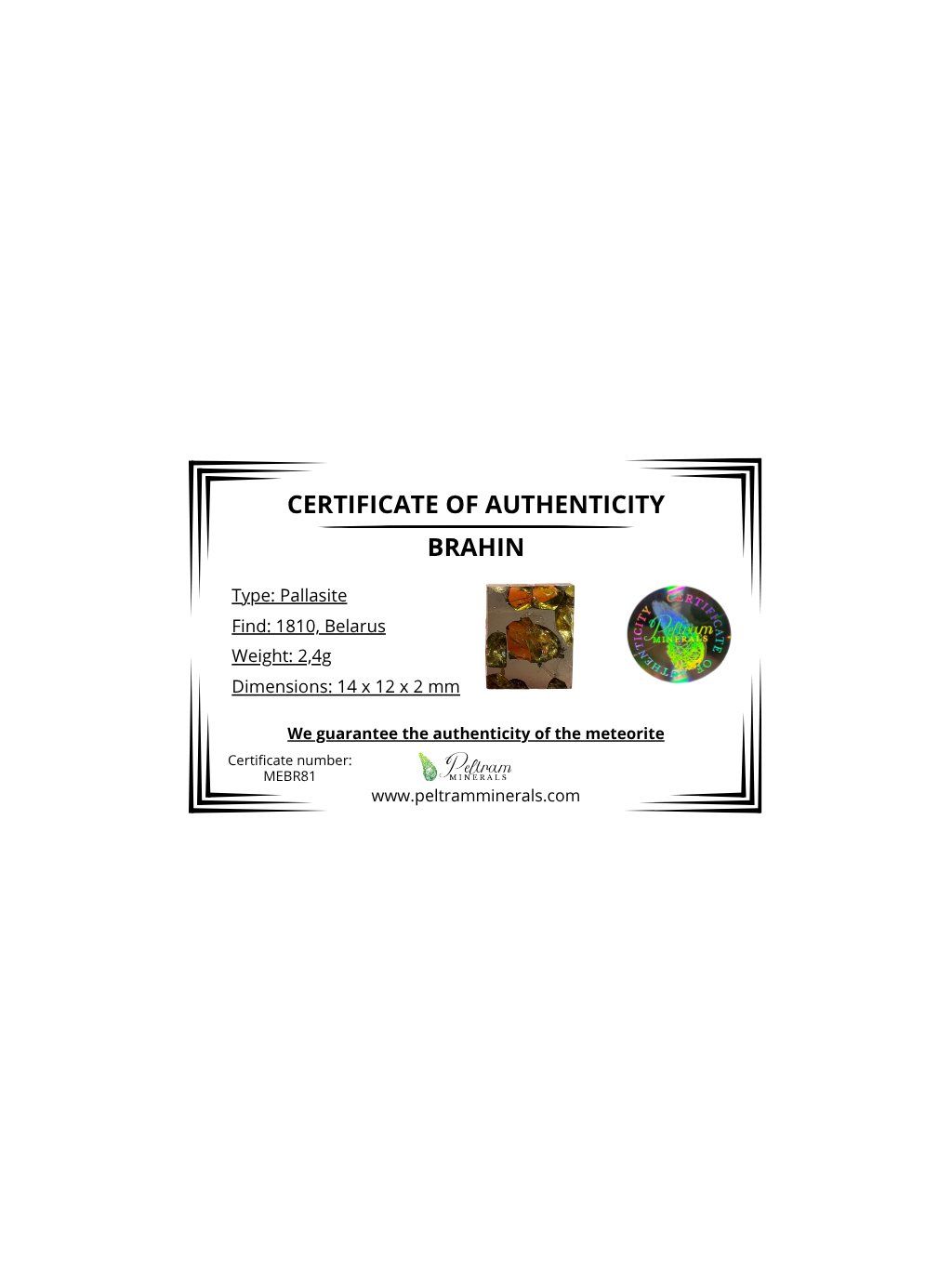 Meteorite Pallasit Brahin 2,4g – Extra Quality – Belarus