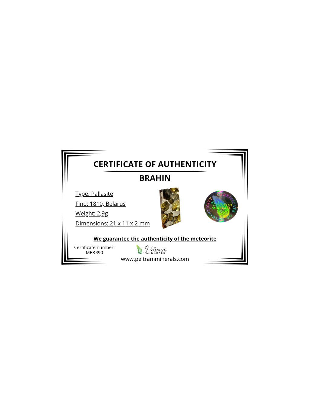 Meteorite Pallasit Brahin 2,9g – Extra Quality – Belarus