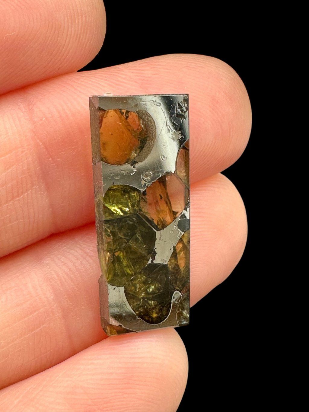 The olivines in the Brahin meteorite are often large, clear, and beautifully translucent, which enhances their aesthetic value. They are typically green to brownish in color, and their quality is high, making them suitable for jewelry.