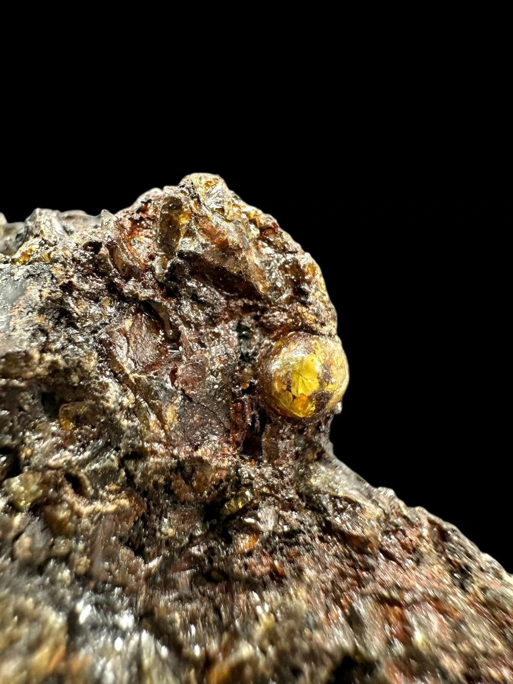 Note: A cluster of olivine crystals can be seen on the surface