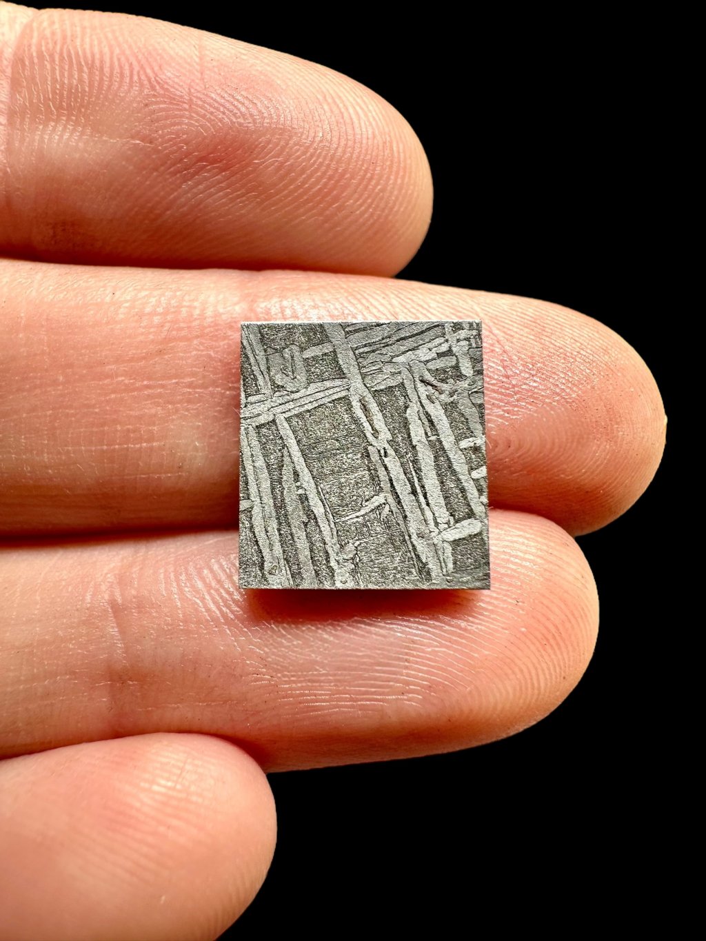 Saint-Aubin is an iron meteorite with high nickel and gold content, but low in iridium. When cut and etched, it reveals very attractive Widmanstätten patterns. It also contains minerals like sarcopside or graftonite and schreibersite needles up to 6 cm long. Additionally, Saint-Aubin may show shock features such as Neumann lines and shock-twinned kamacite.