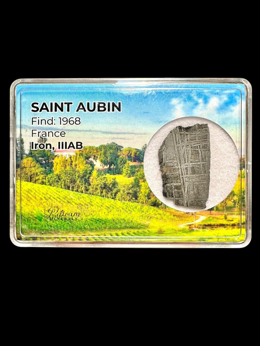 The Saint-Aubin meteorite is a large iron meteorite, discovered in the Saint-Aubin region of France. It belongs to the IIIAB class of iron meteorites, which places it among meteorites with a high iron and nickel content. It is estimated to have fallen to Earth approximately 55,000 years ago.