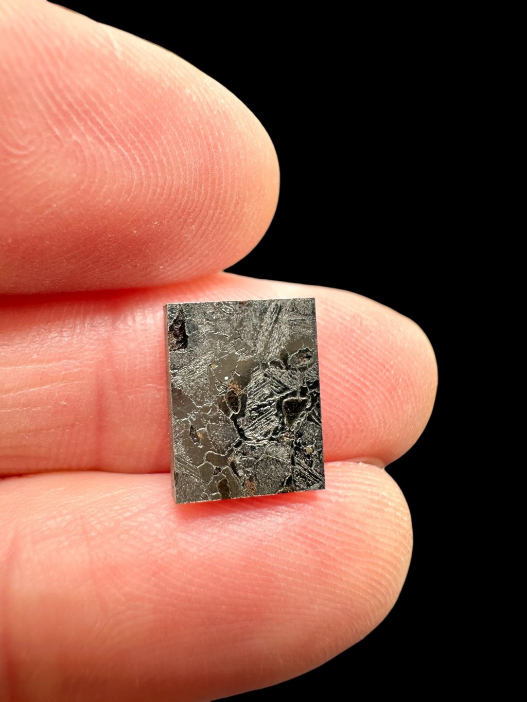 Surface treatment: cut, polished slice (etched with acid on one side only – visible Widmanstätten patterns; the other side is polished without etching)