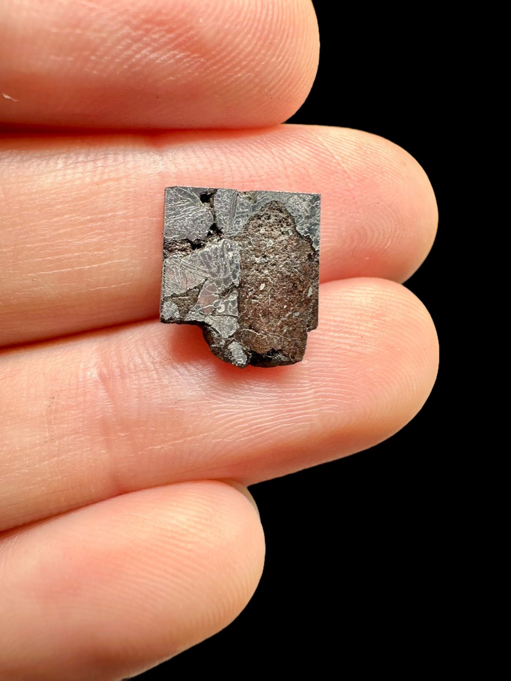 Surface treatment: cut, polished slice (etched with acid on one side only – visible Widmanstätten patterns; the other side is polished without etching)