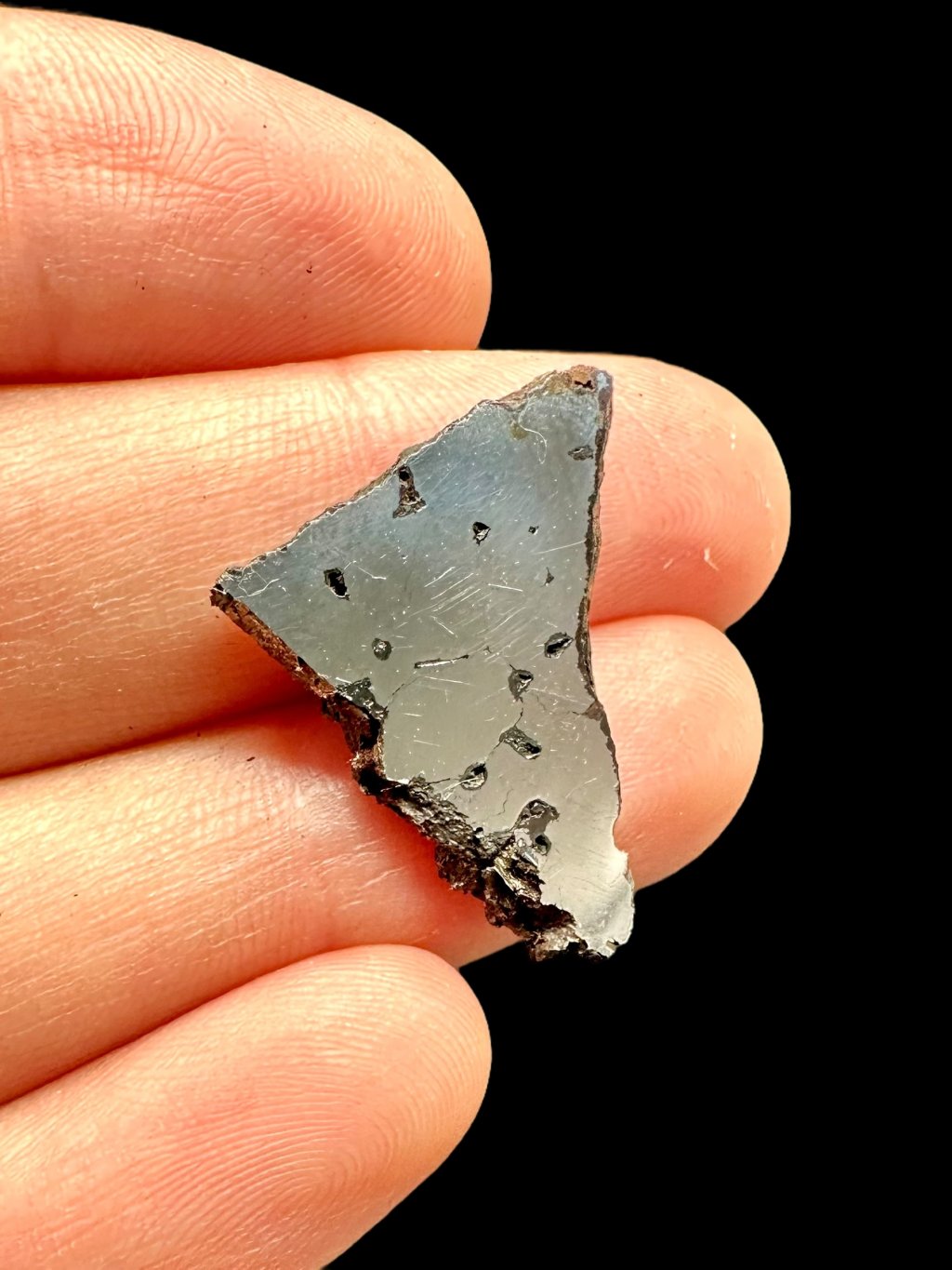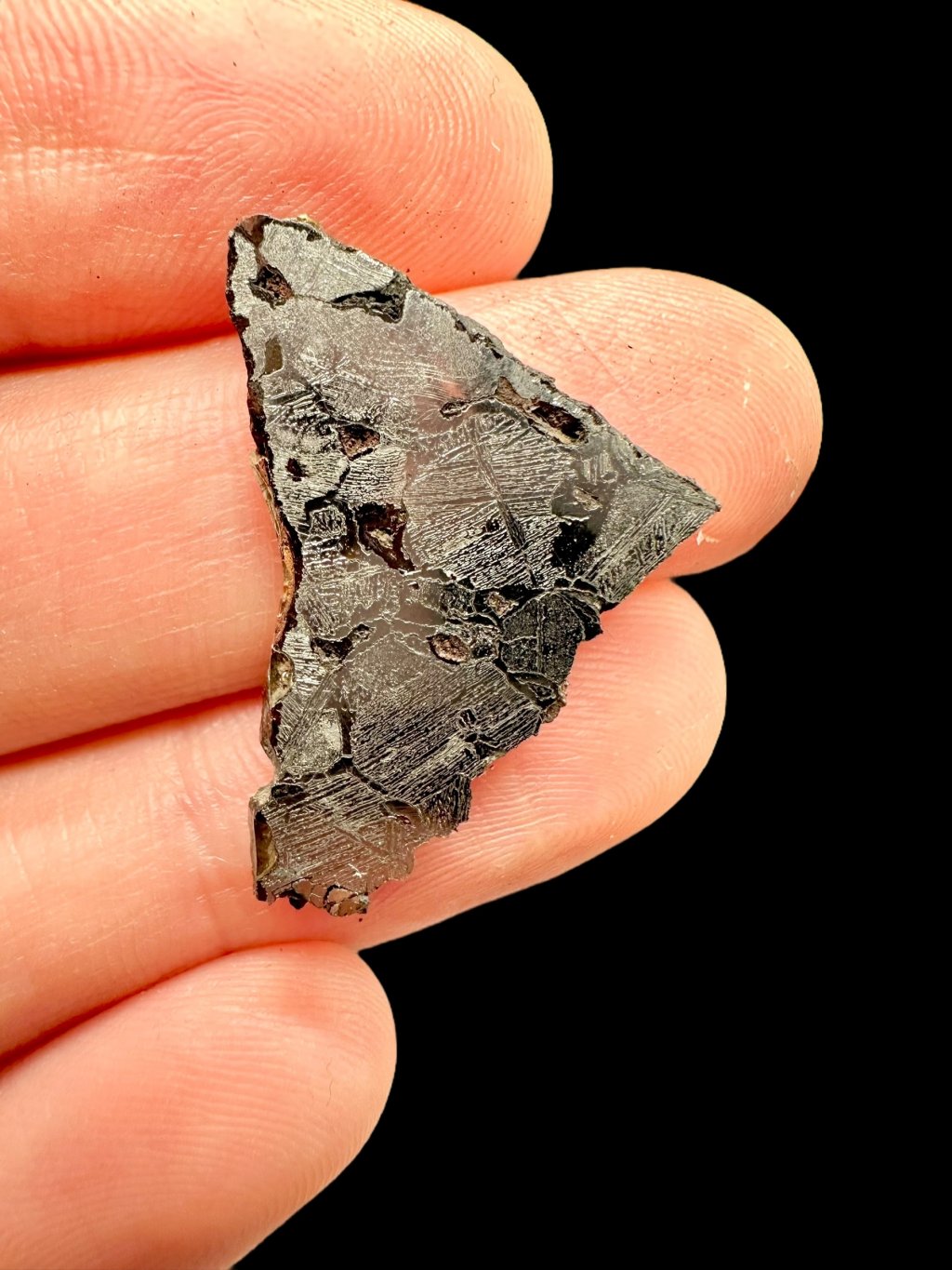 Neumann bands are fine parallel lines visible in some iron meteorites, especially those containing kamacite (a low-nickel iron-nickel alloy). These bands are caused by the deformation of the material during the extremely strong impacts the meteorite experienced during its journey through space or when it hit the Earth.