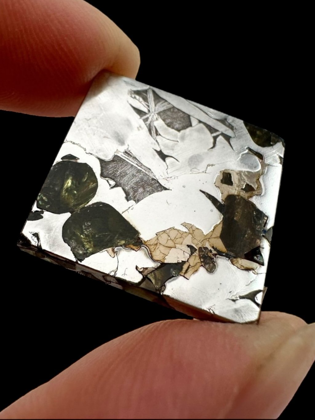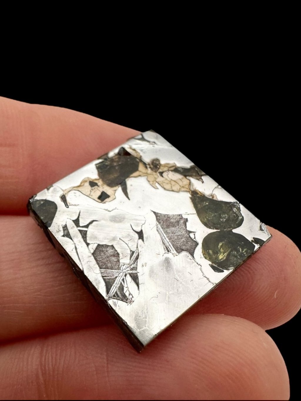 From the perspective of its origin, the meteorite comes from a differentiated asteroid in the main belt between Mars and Jupiter, which underwent melting and internal separation during its early development. Heavier elements such as iron and nickel settled into the core, while lighter silicate minerals formed the mantle. Due to later collisions and dynamic processes, metallic and silicate components became mixed. The result is a unique meteorite containing both purely metallic sections and pallasitic parts rich in olivine crystals.