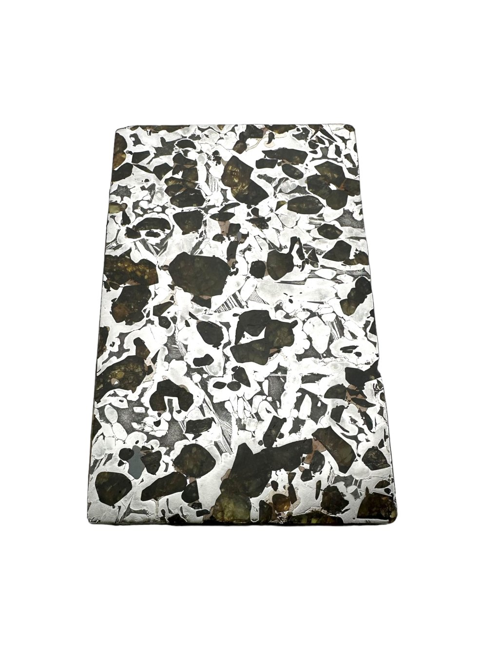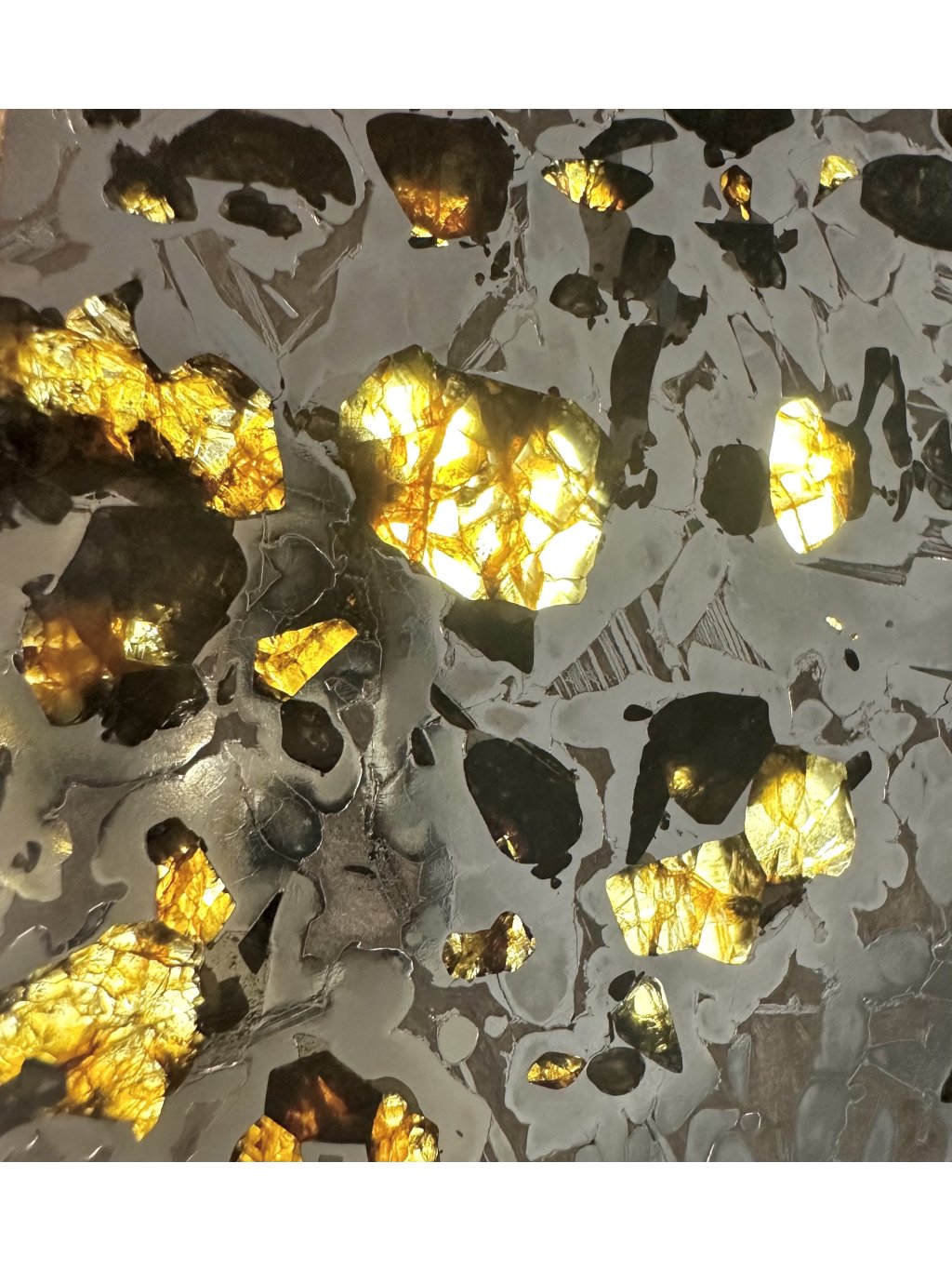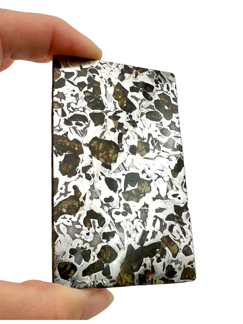 From the perspective of its origin, the meteorite comes from a differentiated asteroid in the main belt between Mars and Jupiter, which underwent melting and internal separation during its early development. Heavier elements such as iron and nickel settled into the core, while lighter silicate minerals formed the mantle. Due to later collisions and dynamic processes, metallic and silicate components became mixed. The result is a unique meteorite containing both purely metallic sections and pallasitic parts rich in olivine crystals.