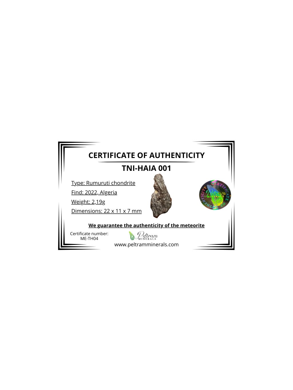 Meteorite Tni-Haia 001 – 2,19g – Algeria