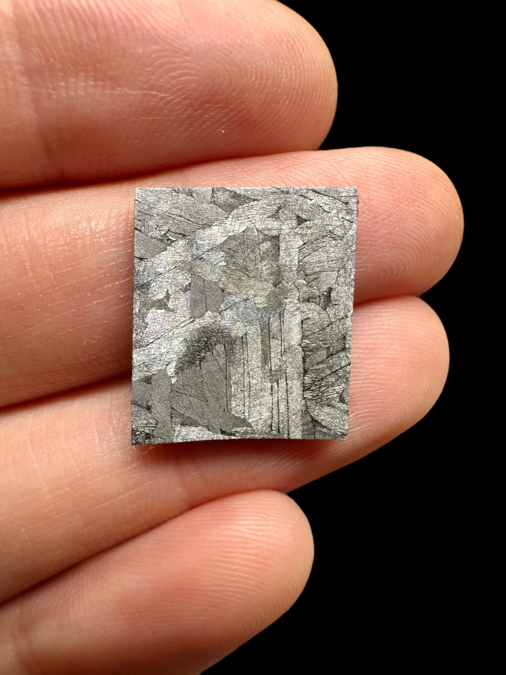 Toluca is an iron meteorite belonging to the group of so-called octahedrites, specifically to the chemical group IAB, and it falls within the sLL subgroup (Low-Au, Low-Ni), meaning it contains lower amounts of gold and nickel compared to other IAB meteorites. Nevertheless, it retains a sufficiently high content of iron and other metals to give it a distinctive metallic silver sheen. When etched and polished, it reveals the so-called Widmanstätten patterns – characteristic crystalline structures that form during extremely slow cooling of the metal in space. Due to its high iron content, Toluca is very heavy, so even a relatively small fragment can have a surprisingly large weight. In addition to iron and nickel, it also contains minor amounts of other minerals such as graphite or troilite, which occasionally form small inclusions in the material.