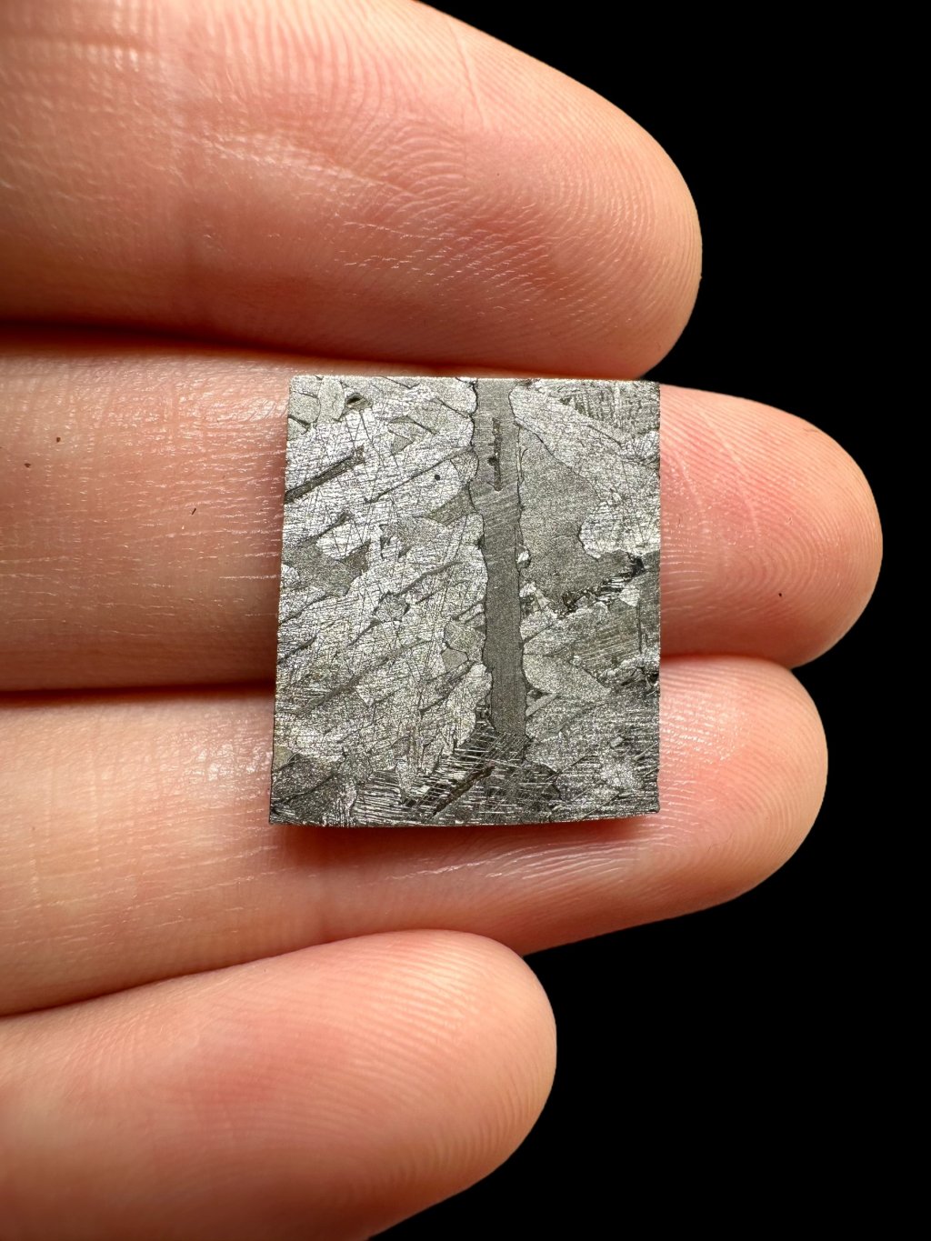 Toluca is an iron meteorite belonging to the group of so-called octahedrites, specifically to the chemical group IAB, and it falls within the sLL subgroup (Low-Au, Low-Ni), meaning it contains lower amounts of gold and nickel compared to other IAB meteorites. Nevertheless, it retains a sufficiently high content of iron and other metals to give it a distinctive metallic silver sheen. When etched and polished, it reveals the so-called Widmanstätten patterns – characteristic crystalline structures that form during extremely slow cooling of the metal in space. Due to its high iron content, Toluca is very heavy, so even a relatively small fragment can have a surprisingly large weight. In addition to iron and nickel, it also contains minor amounts of other minerals such as graphite or troilite, which occasionally form small inclusions in the material.