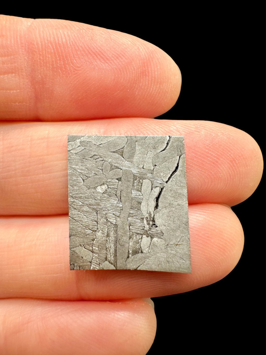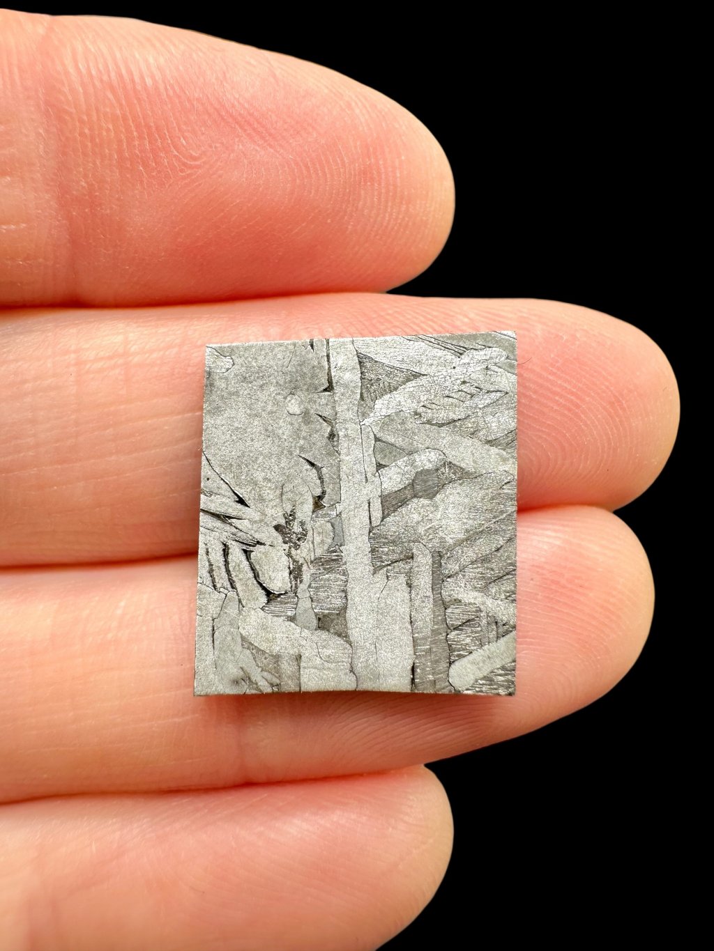 Toluca is an iron meteorite that belongs to the group of octahedrites, specifically to the chemical group IAB, and falls into the sLL subgroup (subgroup Low-Au, Low-Ni), which means it contains lower amounts of gold and nickel compared to other IAB meteorites. Nevertheless, it retains a sufficiently high content of iron and other metals to give it a distinct metallic silver color. When etched and polished, it reveals so-called Widmanstätten patterns, which are typical crystalline structures that form during the very slow cooling of metal in space. Due to its high iron content, it is very heavy, so even a relatively small fragment can have a surprisingly large mass. In addition to iron and nickel, it also contains smaller amounts of other minerals such as graphite or troilite, which sometimes form small inclusions in the material.