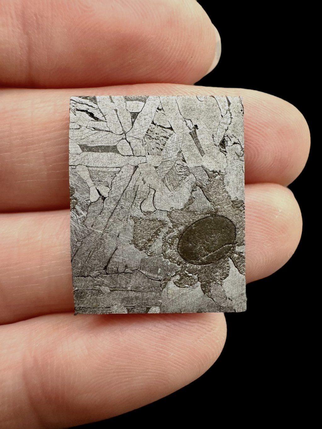 Toluca is an iron meteorite belonging to the group of so-called octahedrites, specifically to the chemical group IAB, and it falls within the sLL subgroup (Low-Au, Low-Ni), meaning it contains lower amounts of gold and nickel compared to other IAB meteorites. Nevertheless, it retains a sufficiently high content of iron and other metals to give it a distinctive metallic silver sheen. When etched and polished, it reveals the so-called Widmanstätten patterns – characteristic crystalline structures that form during extremely slow cooling of the metal in space. Due to its high iron content, Toluca is very heavy, so even a relatively small fragment can have a surprisingly large weight. In addition to iron and nickel, it also contains minor amounts of other minerals such as graphite or troilite, which occasionally form small inclusions in the material.