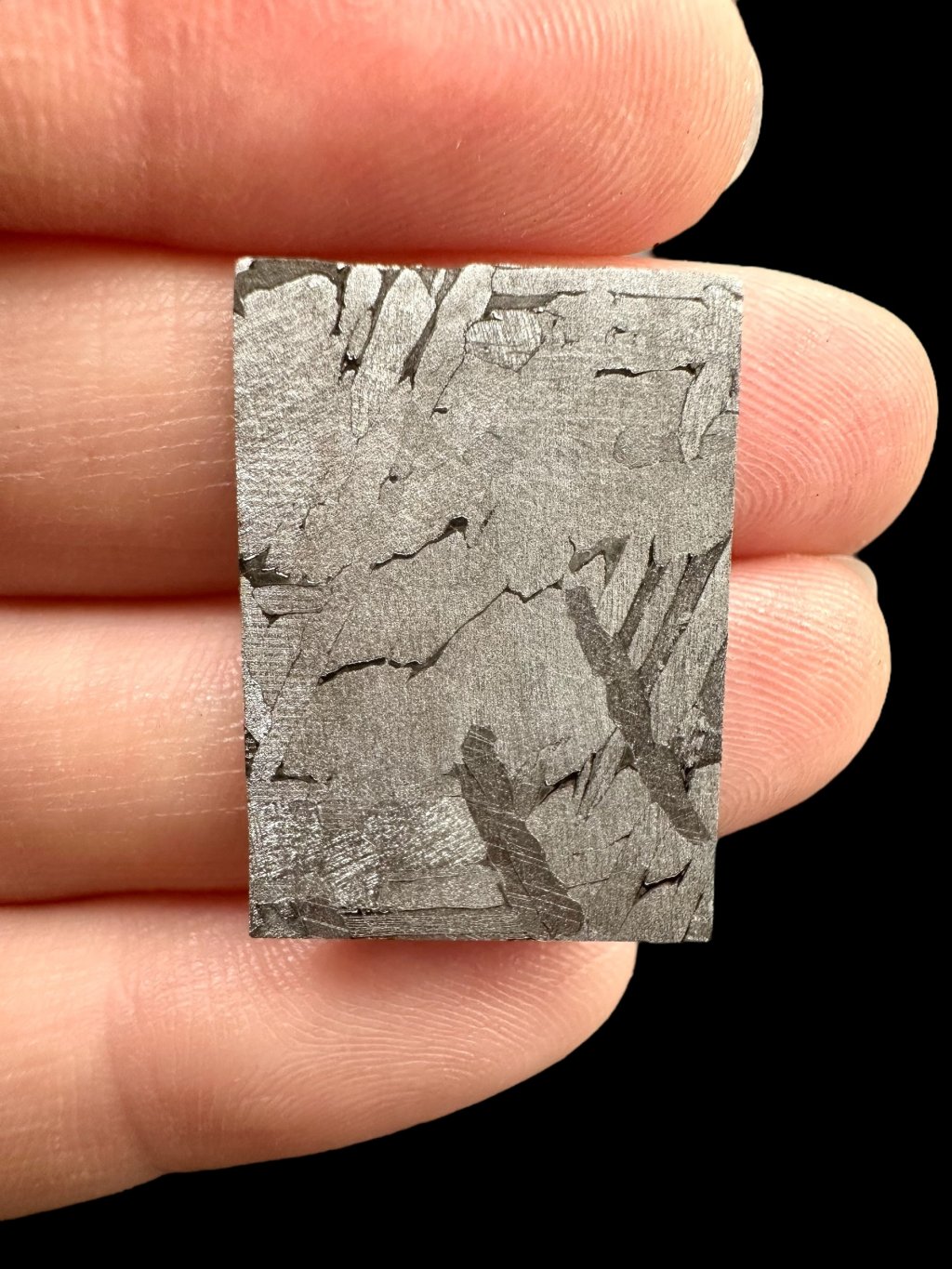 Toluca is an iron meteorite belonging to the group of so-called octahedrites, specifically to the chemical group IAB, and it falls within the sLL subgroup (Low-Au, Low-Ni), meaning it contains lower amounts of gold and nickel compared to other IAB meteorites. Nevertheless, it retains a sufficiently high content of iron and other metals to give it a distinctive metallic silver sheen. When etched and polished, it reveals the so-called Widmanstätten patterns – characteristic crystalline structures that form during extremely slow cooling of the metal in space. Due to its high iron content, Toluca is very heavy, so even a relatively small fragment can have a surprisingly large weight. In addition to iron and nickel, it also contains minor amounts of other minerals such as graphite or troilite, which occasionally form small inclusions in the material.
