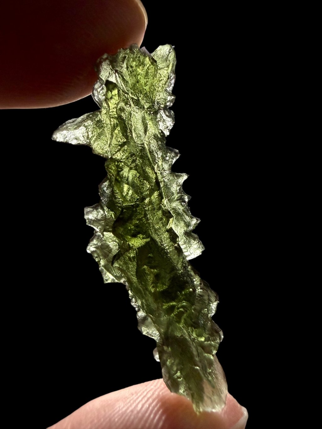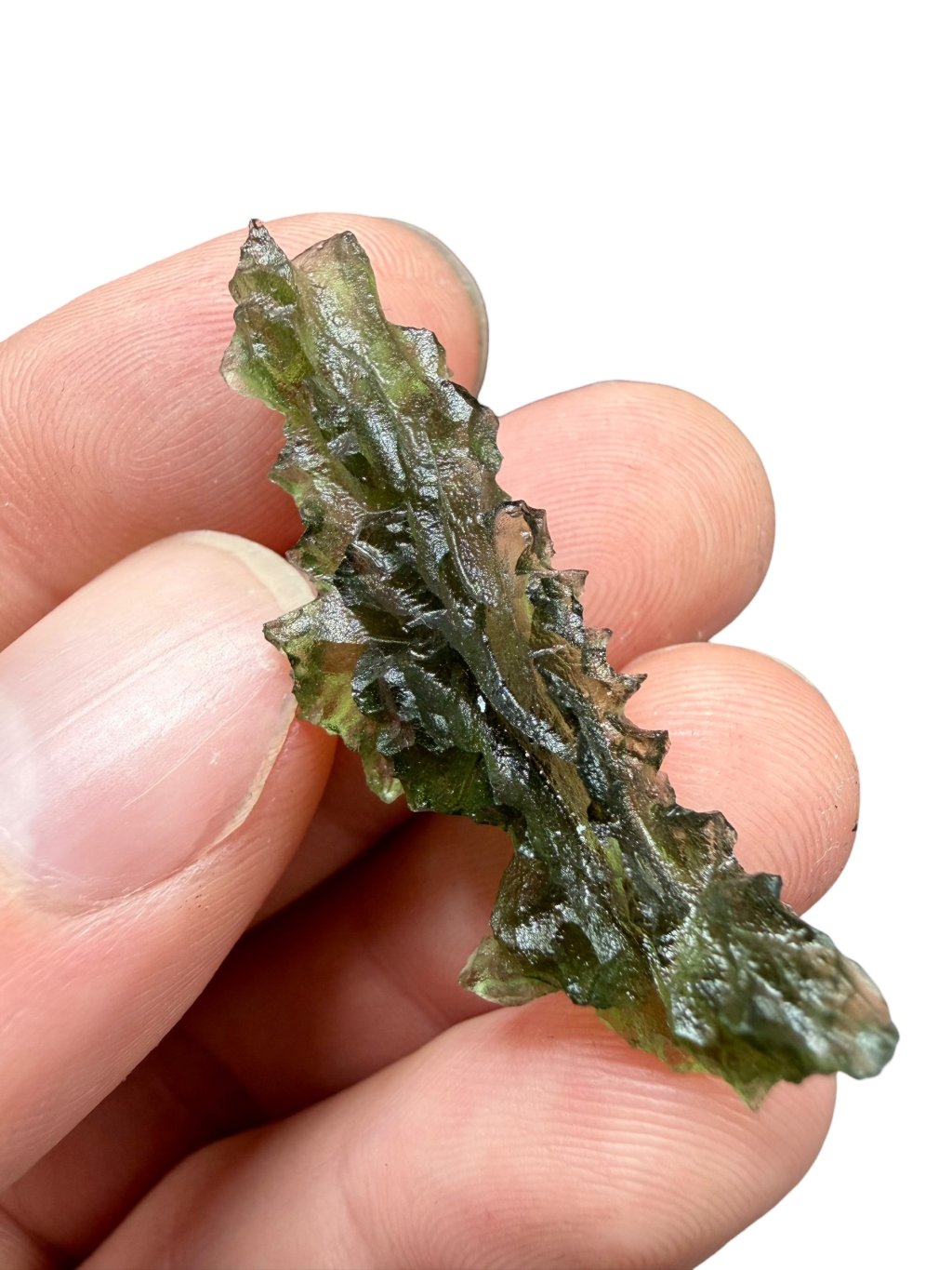 This moldavite comes from official mining in Besednice, where damage to the stones often occurred. The damaged glossy surfaces were then treated with acid to create a matte finish. These repaired moldavites are classified as lower quality, which is also reflected in their price, making them significantly cheaper and more affordable compared to undamaged moldavites. These stones are suitable both for jewellery and for collectors who appreciate a lower price for very beautiful pieces with the unique, deep structure of moldavites from the Besednice Jezkovna.