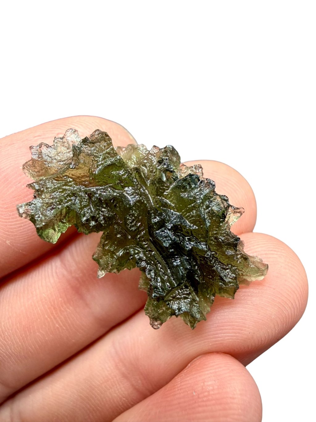 This moldavite comes from official mining in Besednice, where damage to the stones often occurred. The damaged glossy surfaces were then treated with acid to create a matte finish. These repaired moldavites are classified as lower quality, which is also reflected in their price, making them significantly cheaper and more affordable compared to undamaged moldavites. These stones are suitable both for jewellery and for collectors who appreciate a lower price for very beautiful pieces with the unique, deep structure of moldavites from the Besednice Jezkovna.